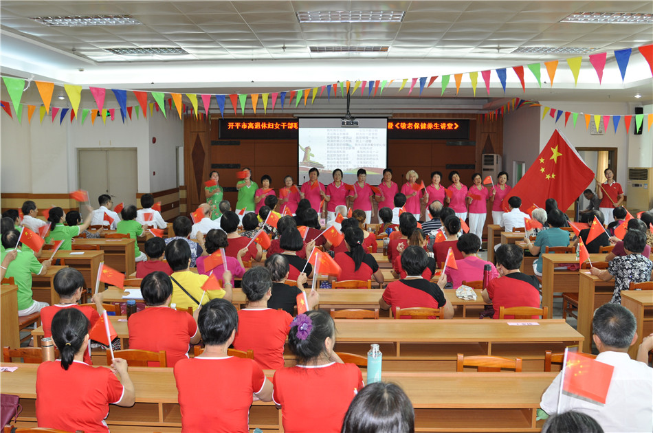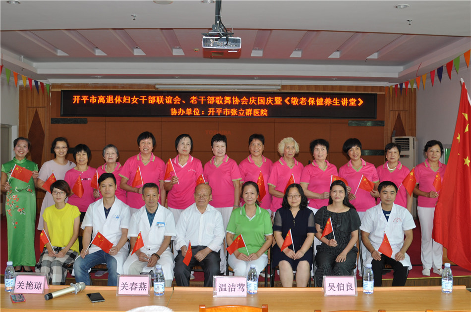 日前,开平市离退休妇女干部联谊会和市老干部歌舞协会在市老干部活动中心举办庆国庆重阳节暨“敬老保健养生讲堂”活动,庆祝新中国70华诞和重阳节。