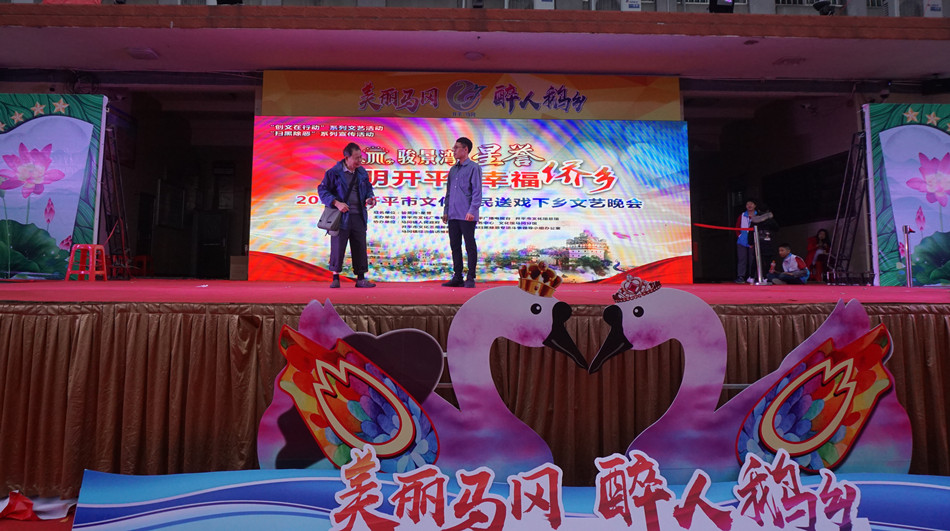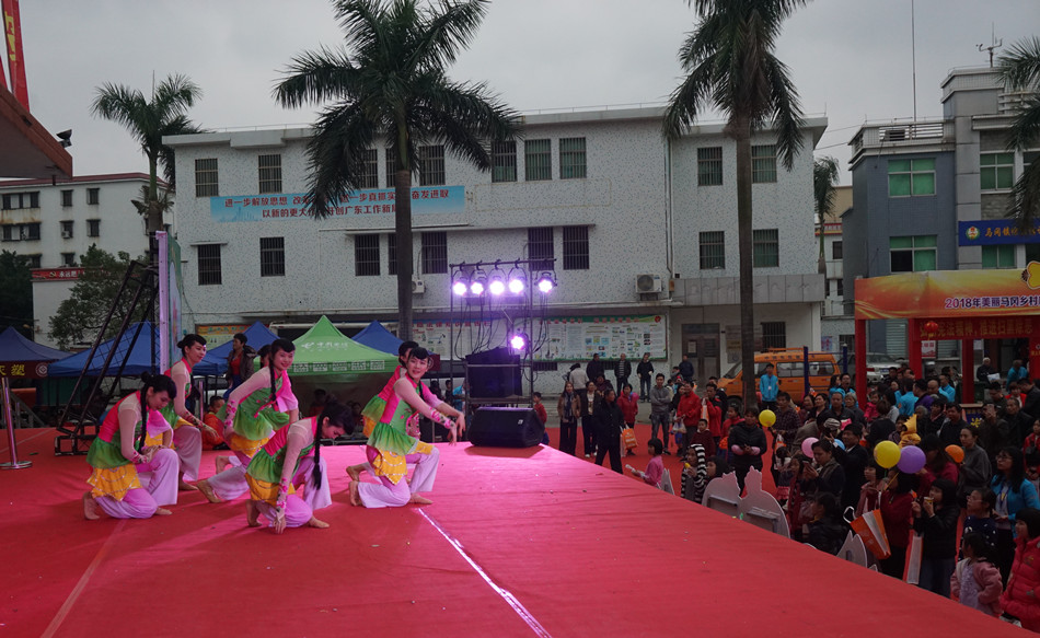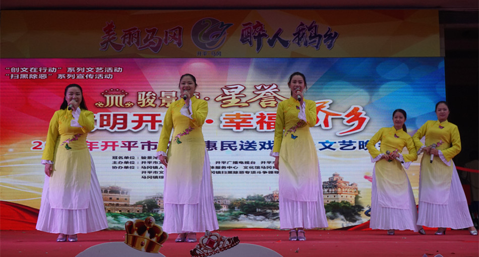 文艺演出节目内容丰富,有舞蹈、独唱、小提琴演奏、开平民歌表演唱、小品等。参演人员既有市艺术团的专业人员,也有马冈镇群众组织的舞蹈队。