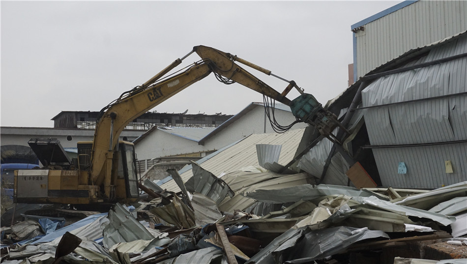 清拆现场,2台大型机械同时进场,对违法建筑物进行拆除。拆除前,工作人员首先对周边场地进行围挡,设置警戒线,切断水电,防止发生安全事故,确保拆除行动安全有序。