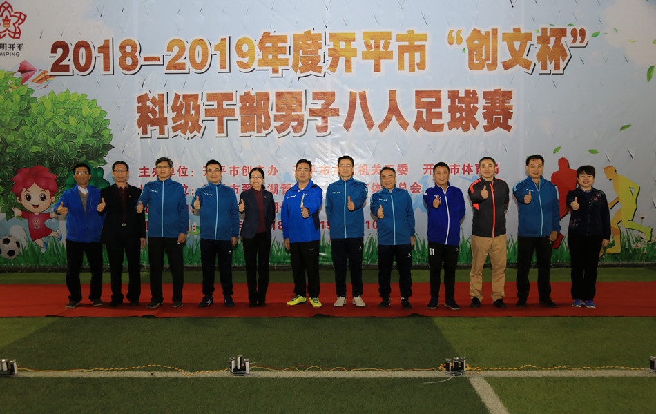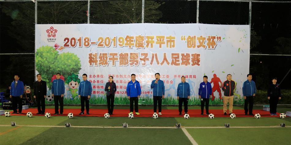 12月18日晚上,2018-2019年度开平市“创文杯”科级干部男子八人足球赛开赛仪式在翠山湖体育公园足球场举行,展示科级干部团结和谐的精神面貌,为全市创建全国文明城市工作加油助力。开平市领导庞正华、邝积康等出席了开赛仪式。