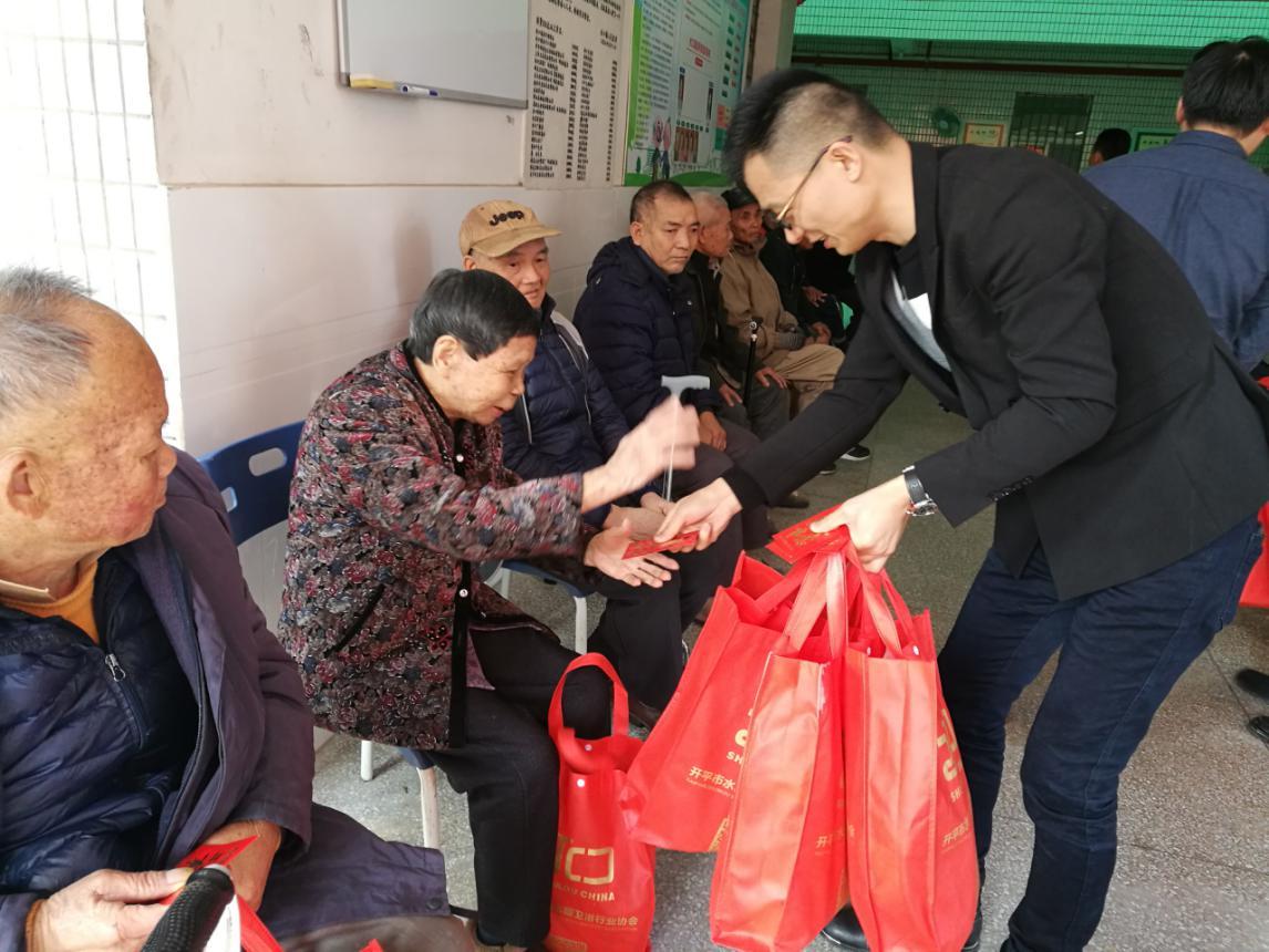 水口敬老院现有入住老人45名,工作人员8人。协会人员为老人家送上慰问品,向他们提前送上新春的祝福。