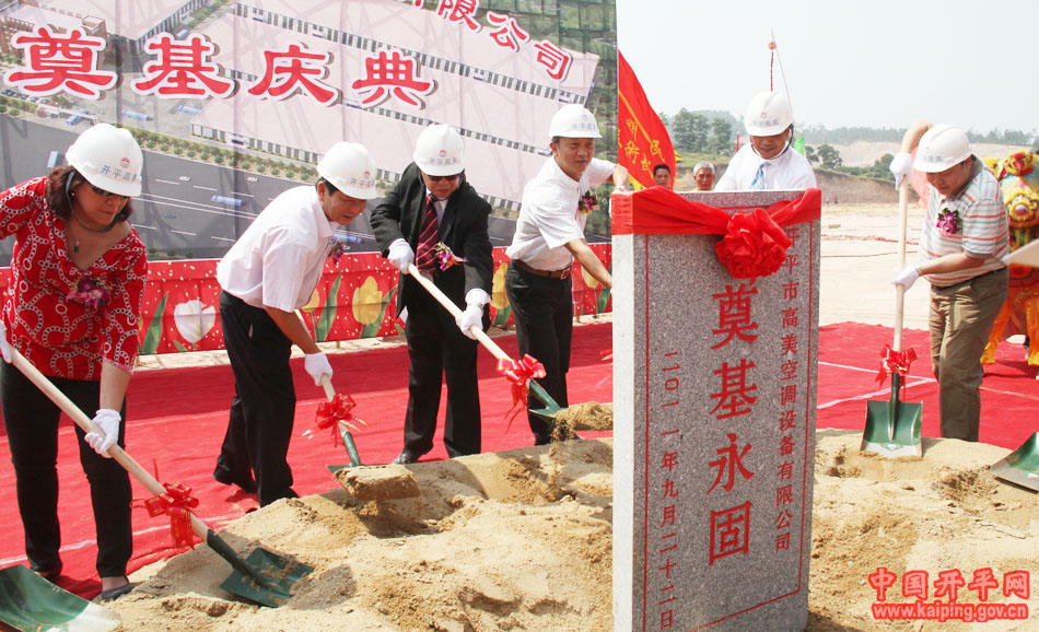 开平市经信、国土、规划、建设等有关部门以及翠山湖管委会的负责人及相关人员参加了开平高美空调的奠基仪式。