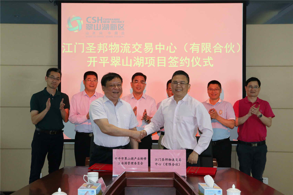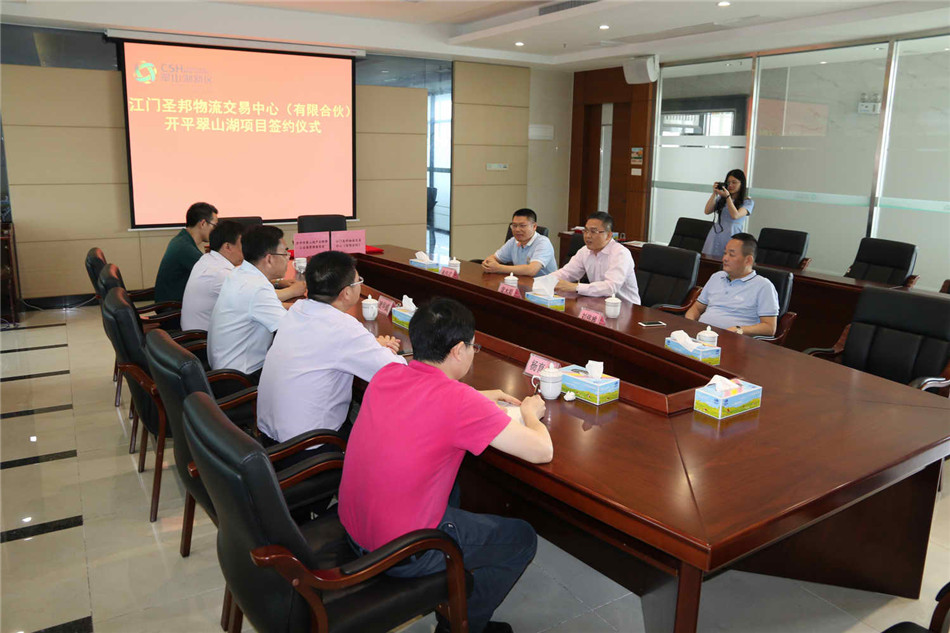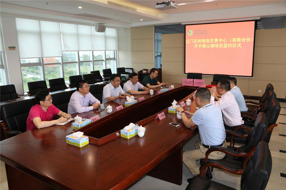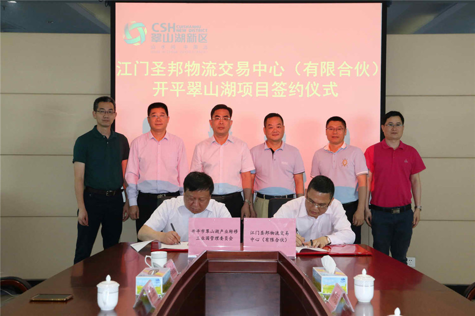 5月16日上午,翠山湖管委会与江门圣邦物流交易中心在管委会大楼举行签约仪式,总投资12亿元的江门圣邦物流交易中心(有限合伙)项目正式落户园区。开平市委常委、翠山湖管委会主任凌华威,以及翠山湖管委会相关负责人、中航集团航天数联信息技术(深圳)有限公司和圣邦物流交易中心高层领导出席签约仪式。翠山湖管委会常务副主任梁卫民,圣邦物流交易中心代表黄木顺,分别代表双方签订了投资合同。