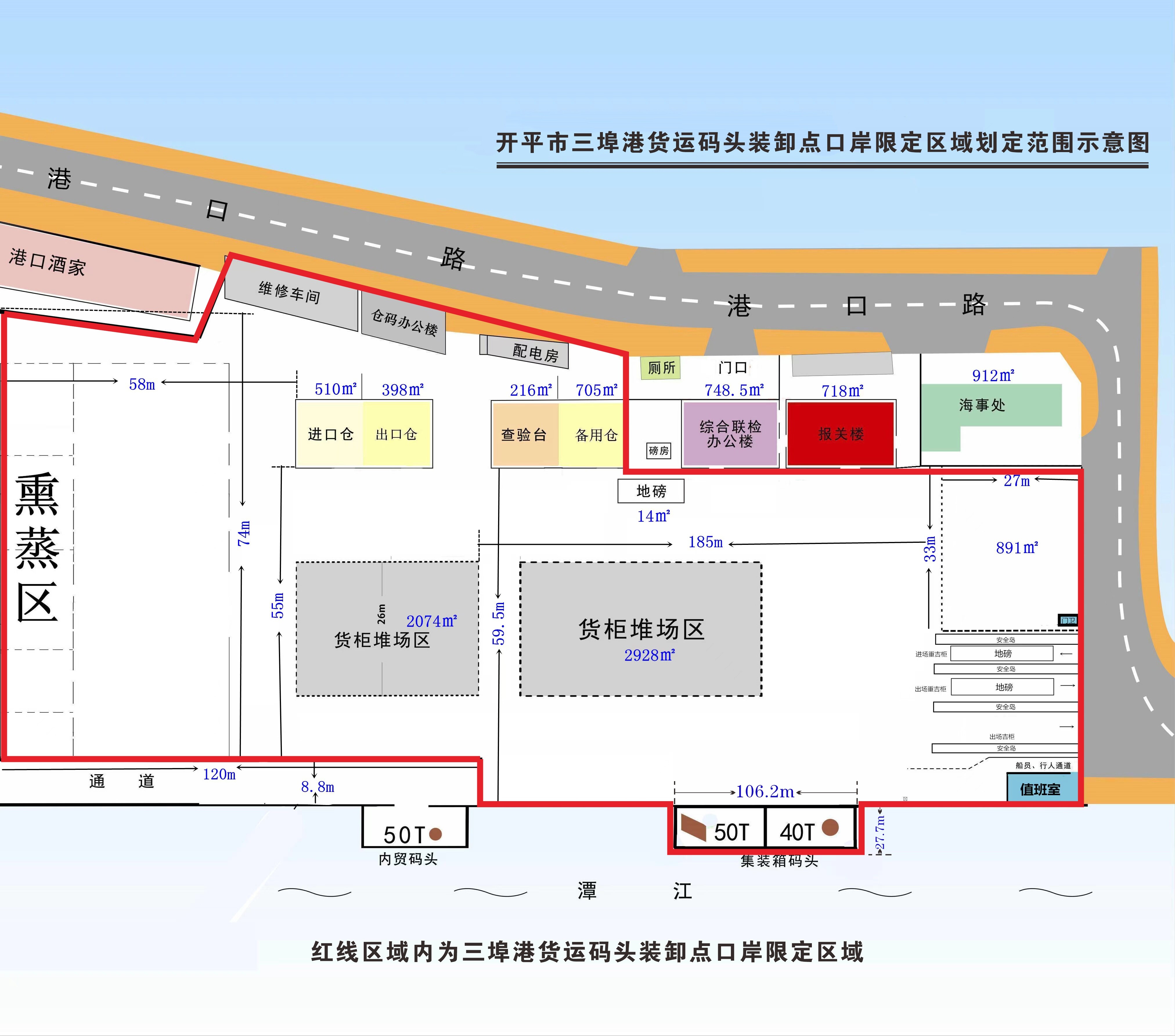 一、开平市三埠港货运码头装卸点口岸限定区域的范围为:红色线条围闭区域内(附件所示)。