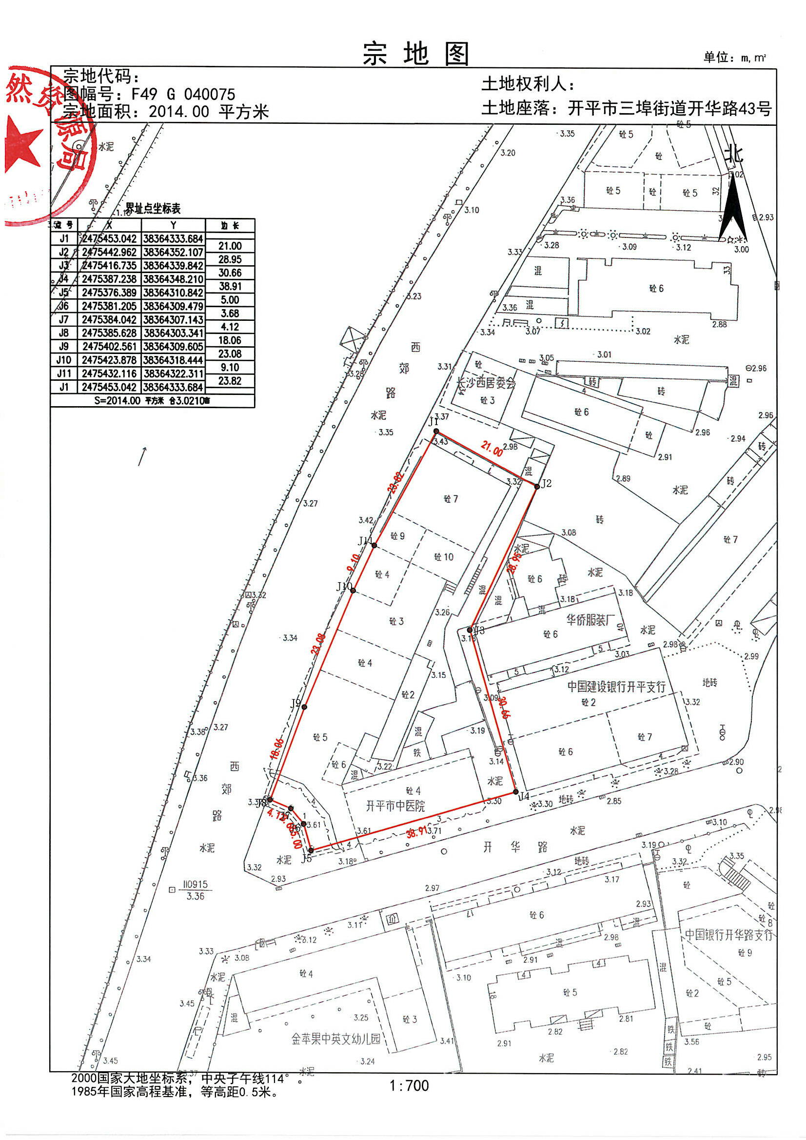 坐落在三埠长沙开华路(现编门牌:开平市三埠街道开华路43号)[开府国用(1988)第000913号]的土地使用权,土地面积2014平方米。用地单位开平市中医院现申请办理不动产变更登记。若对该用地界线范围内的用地或地上建筑物权属有异议者,自公告之日起15个工作日内向开平市自然资源局三埠自然资源所书面提出意见。如无异议,公告期满即给该单位办理不动产登记有关手续。用地界线详见附图。