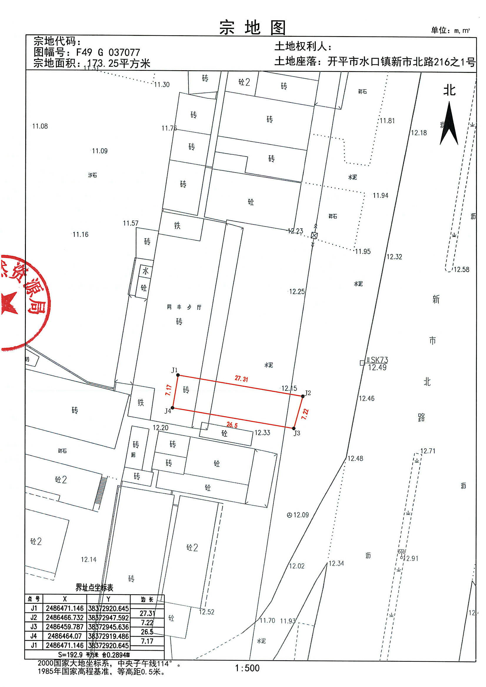 坐落在水口镇新市北路红罗岗(现编门牌:开平市水口镇新市北路216号之1)[开府国用(1993)第817109号]的土地使用权,土地面积192.9平方米。用地单位谭溢荣现申请办理不动产变更登记。若对该用地界线范围内的用地或地上建筑物权属有异议者,自公告之日起15个工作日内向开平市自然资源局水口自然资源所书面提出意见。如无异议,公告期满即给该单位办理不动产登记有关手续。用地界线详见附图。