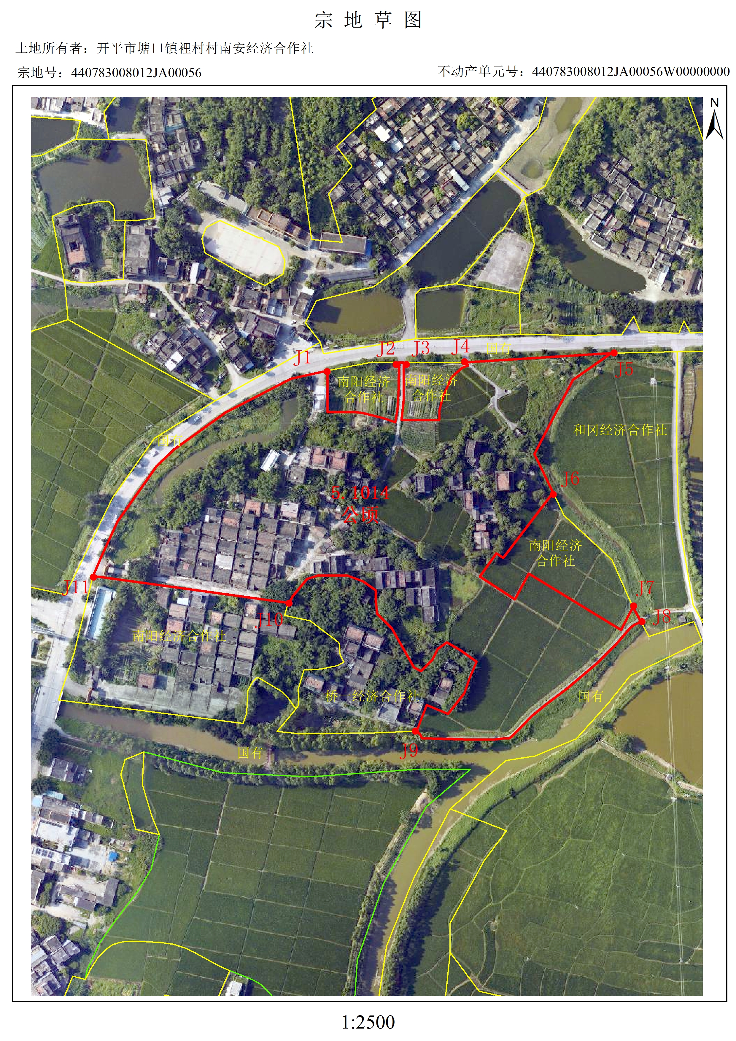 开平市塘口镇裡村村南安经济合作社农民集体坐落塘口镇(地号056)的土地所有权,东至和冈经济合作社,南至国有土地,西至国有土地,北至国有土地,合计土地面积5.1014公顷(详见宗地草图),现申请办理集体土地所有权变更登记。若对该土地所有权权属有异议者,自公告之日起15个工作日内向镇自然资源所或开平市自然资源局提出书面意见。如无异议,公告期满后将给予该单位办理土地所有权登记。