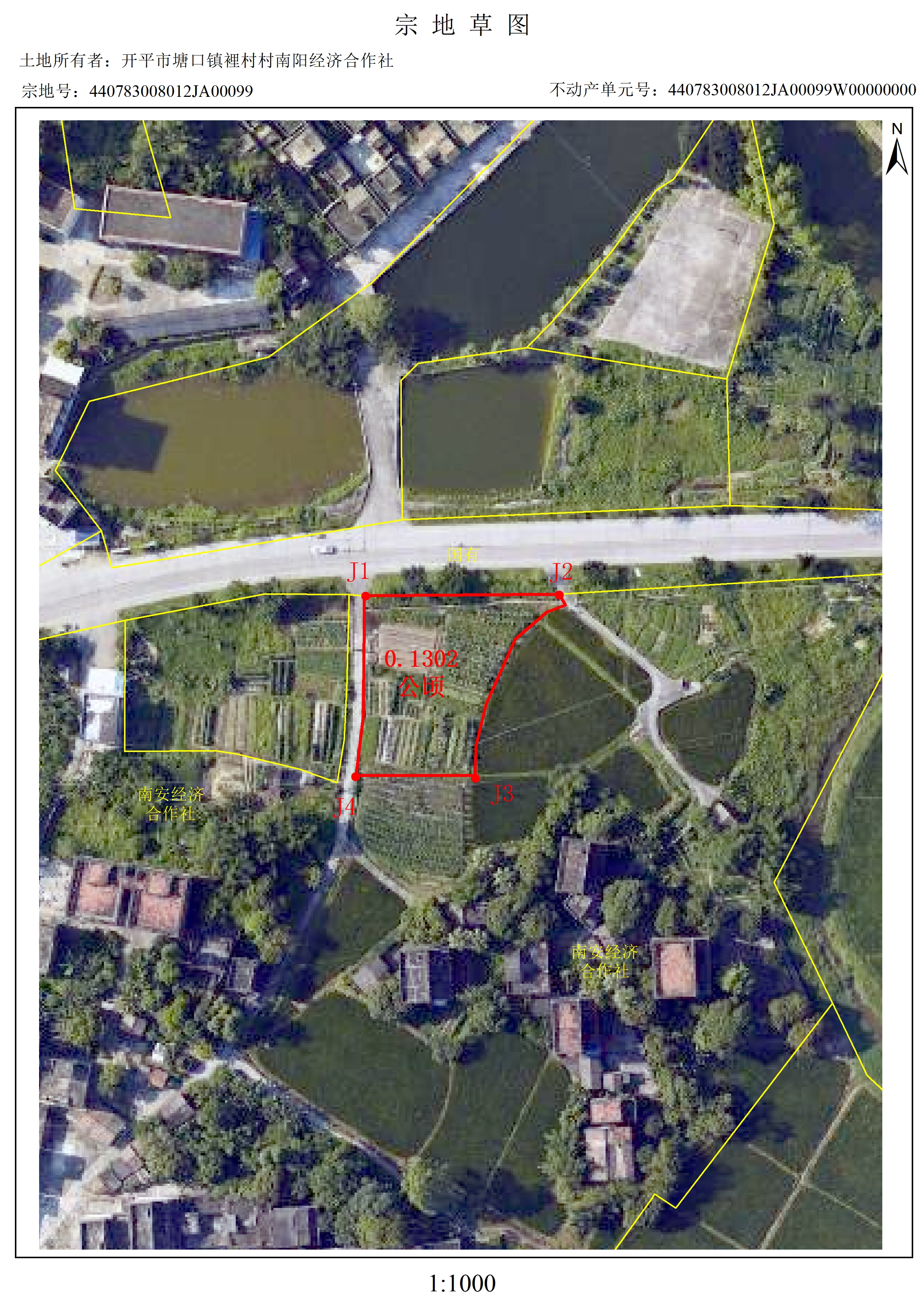 开平市塘口镇裡村村南阳经济合作社农民集体坐落塘口镇(地号099)的土地所有权,东至南安经济合作社,南至南安经济合作社,西至南安经济合作社,北至国有土地,合计土地面积0.1302公顷(详见宗地草图),现申请办理集体土地所有权确权登记。若对该土地所有权权属有异议者,自公告之日起15个工作日内向镇自然资源所或开平市自然资源局提出书面意见。如无异议,公告期满后将给予该单位办理土地所有权登记。