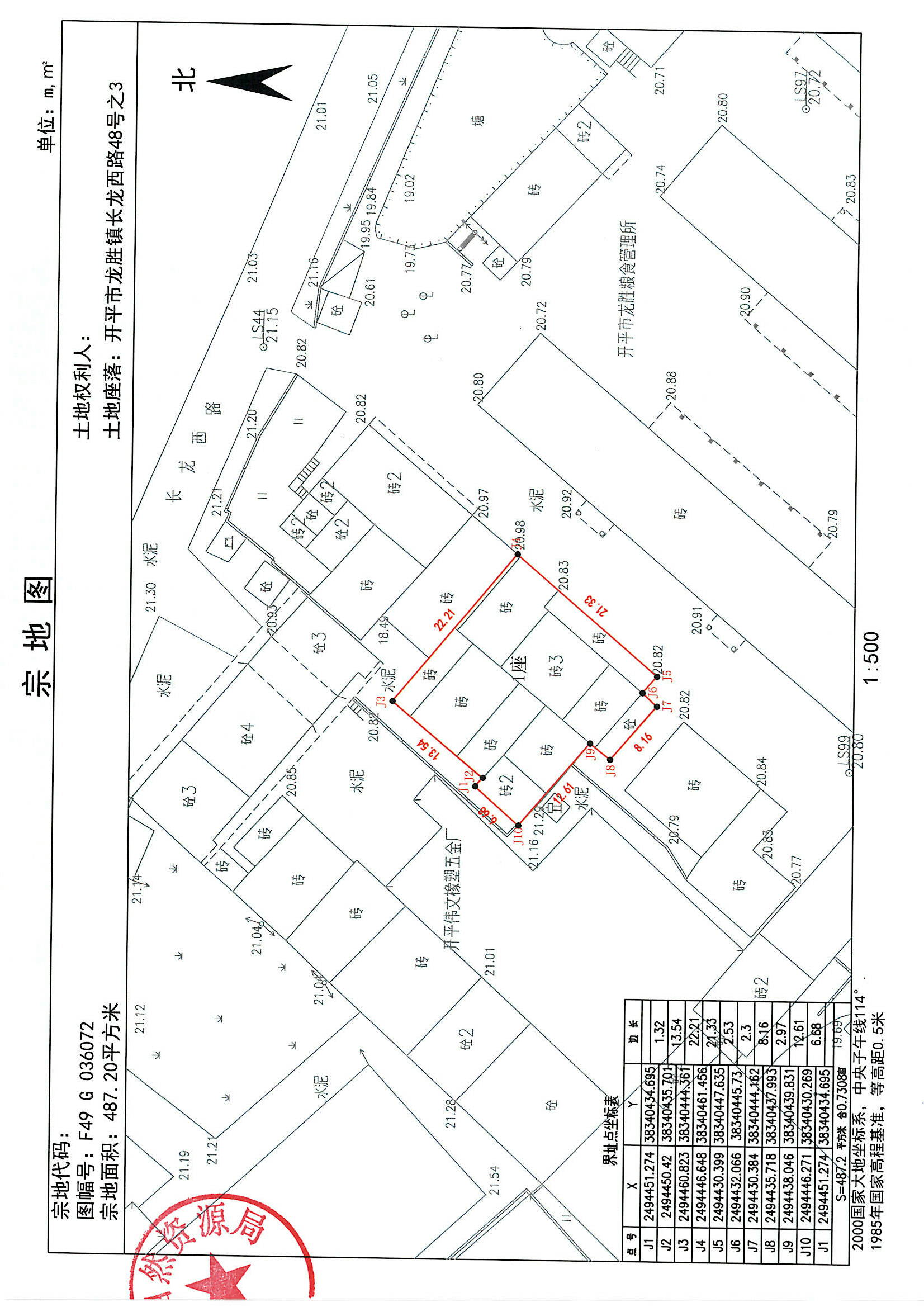 坐落在开平市龙胜镇龙胜圩长龙西路48—2号(现编门牌:开平市龙胜镇长龙西路48号之3)[开府国用(2009)第05155号]的土地使用权,原土地面积774.00平方米,现重新测绘后根据宗地实际使用情况,宗地面积487.20平方米。用地单位开平市粮食局直属库(开平市谭江粮油储备有限公司)现申请办理不动产变更登记。若对该用地界线范围内的用地或地上建筑物权属有异议者,自公告之日起15个工作日内向开平市自然资源局水口自然资源所书面提出意见。如无异议,公告期满即给该单位办理不动产登记有关手续。用地界线详见附图。