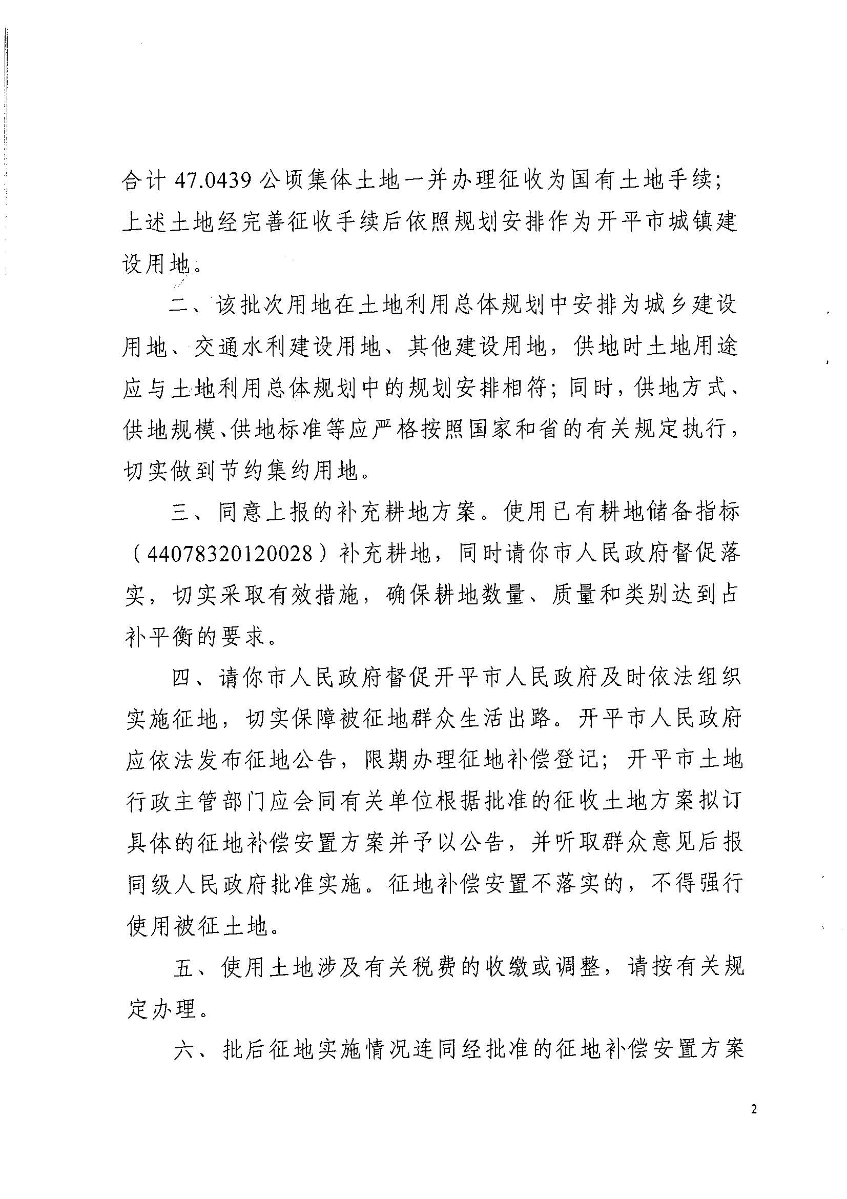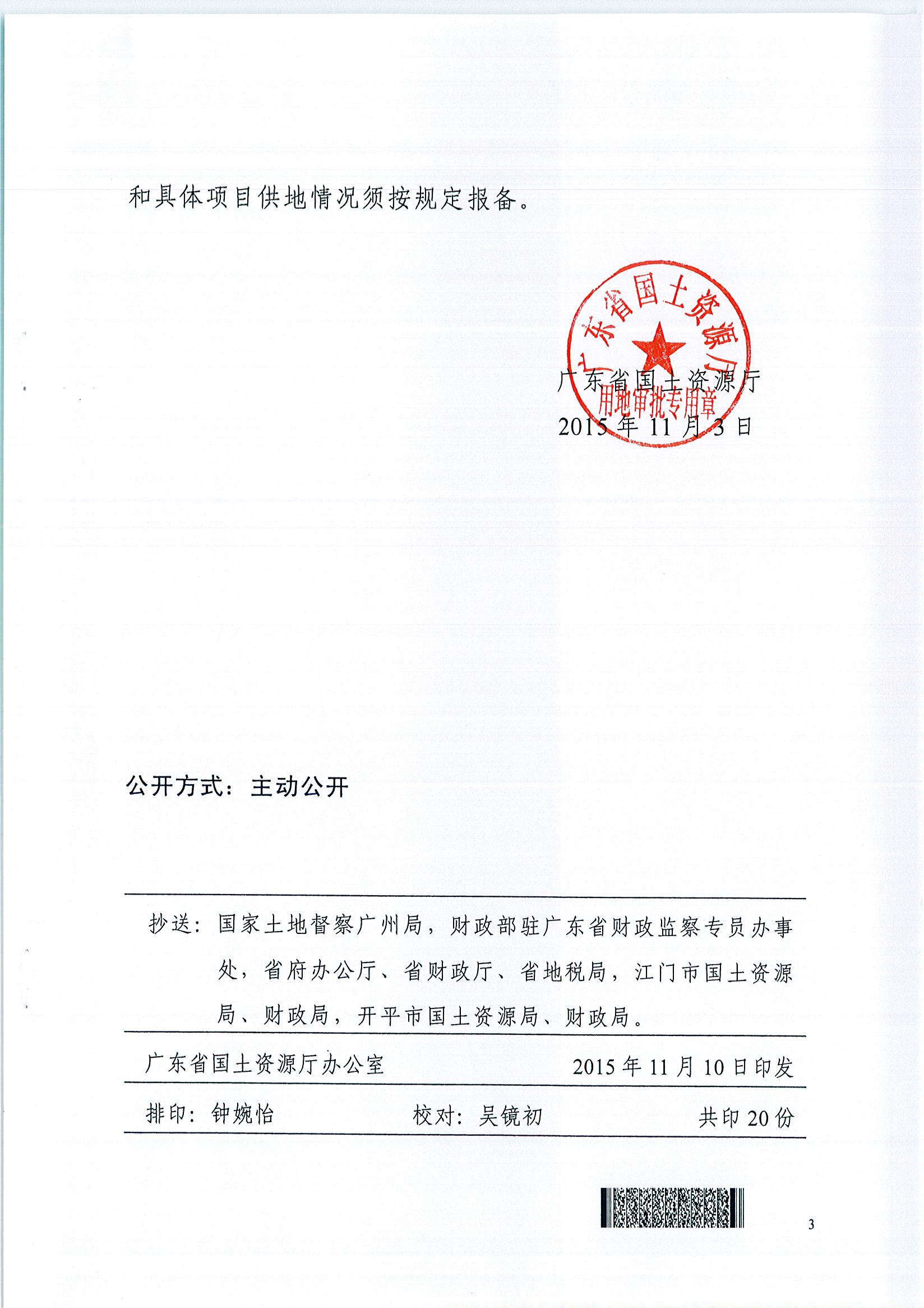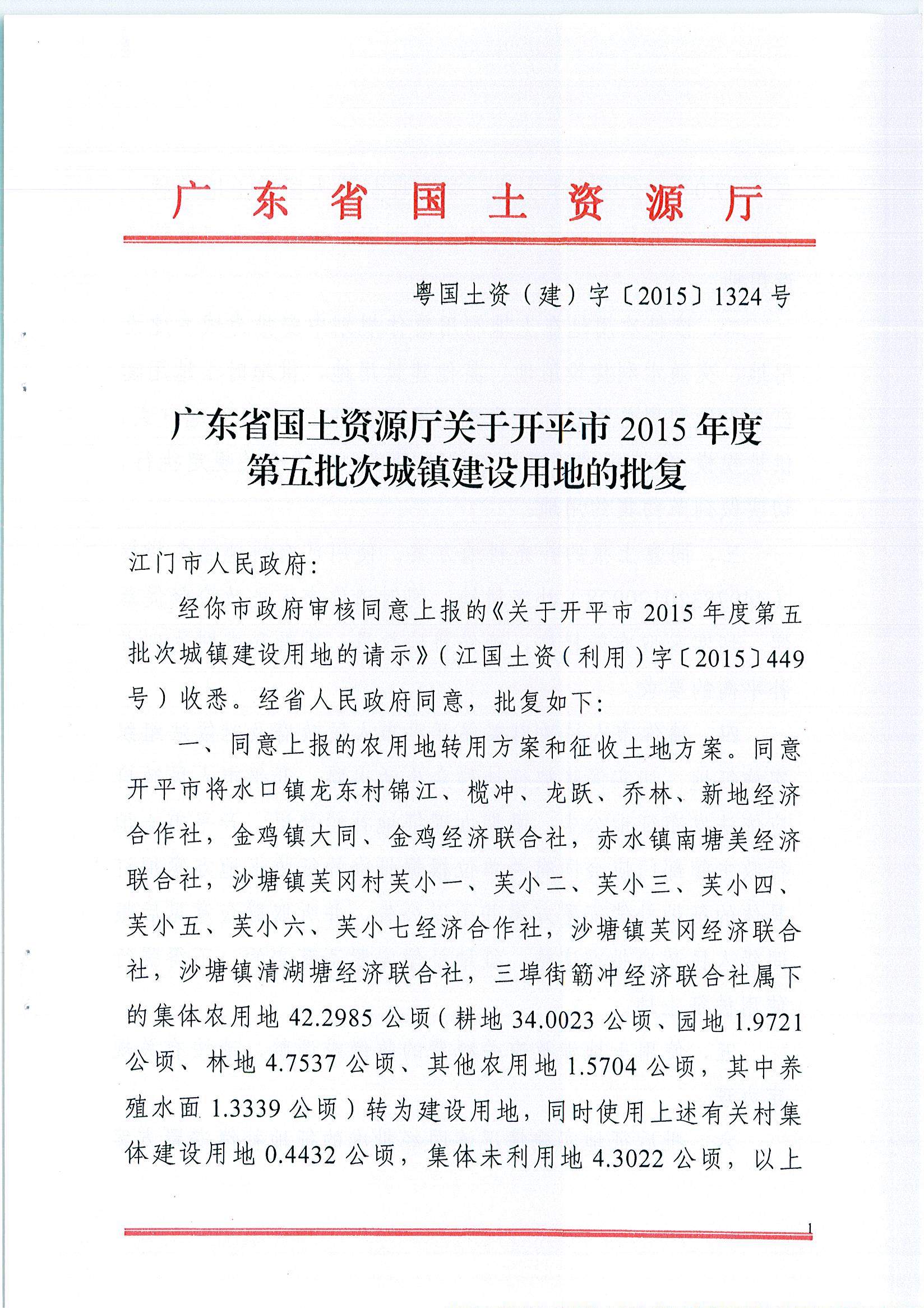 开平市2015年度第五批次城镇建设用地的批复