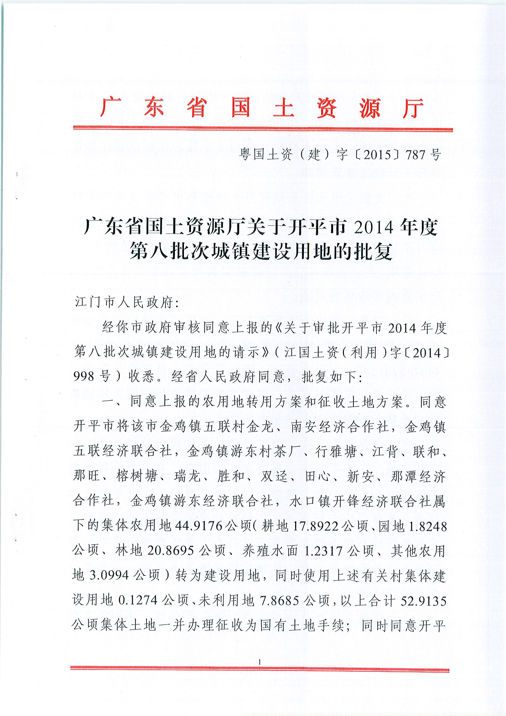 开平市2014年度第八批次城镇建设用地的批复