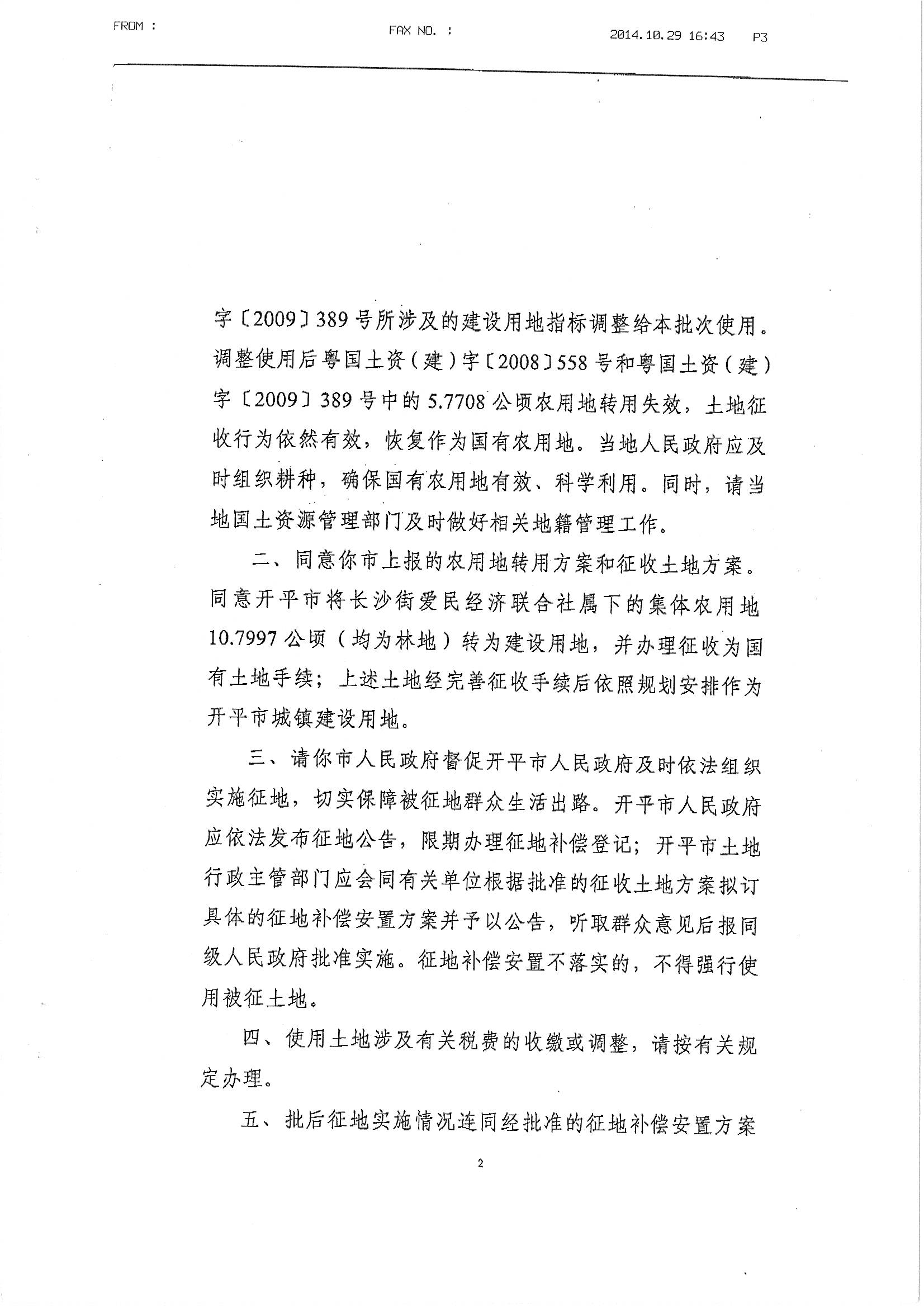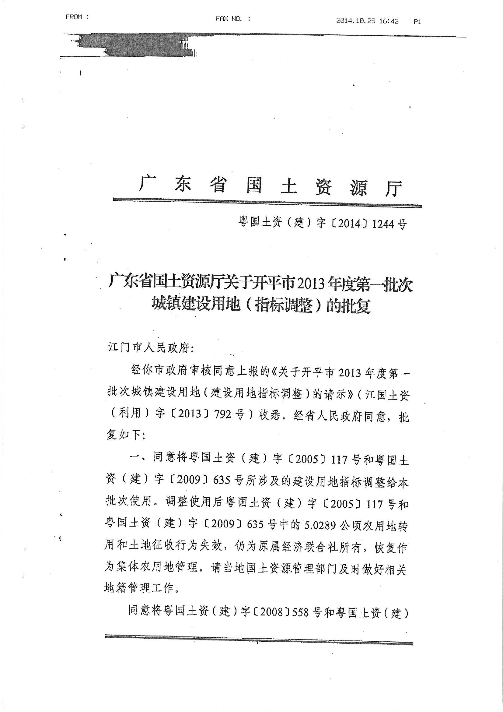 开平市2013年度第一批次城镇建设用地(指标调整)的批复