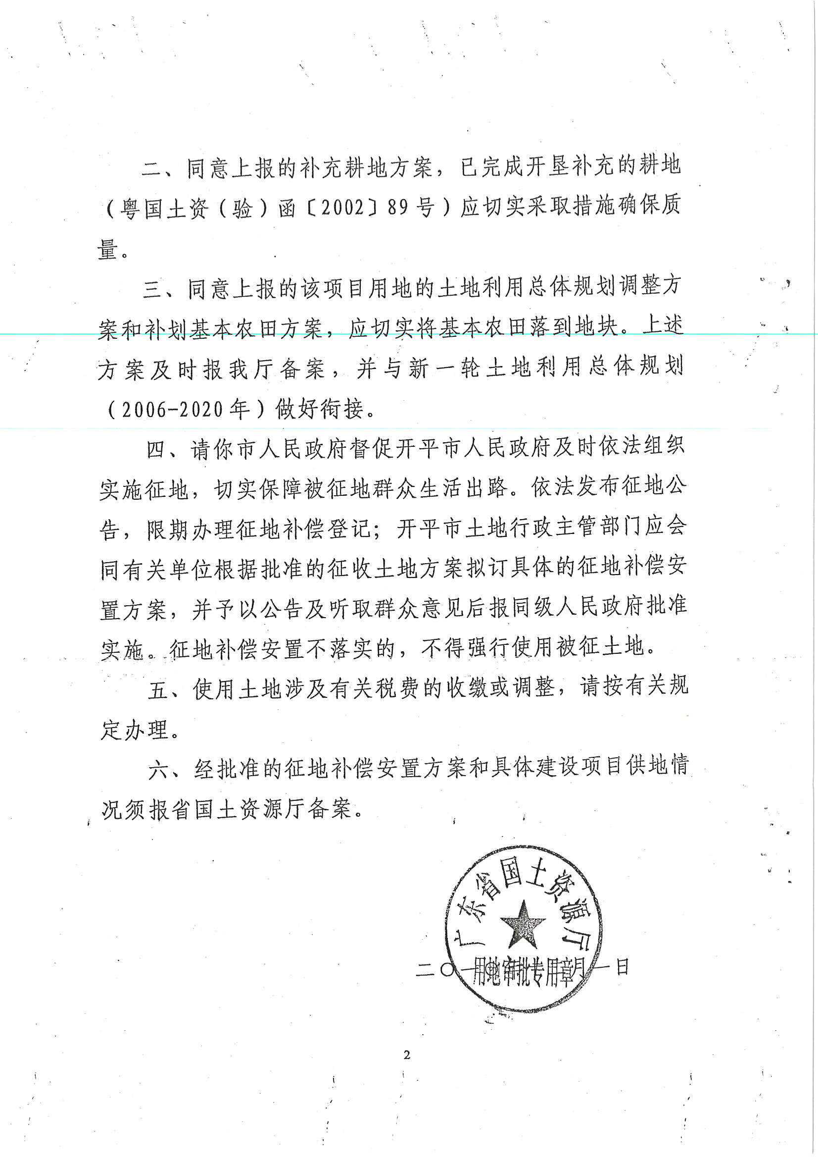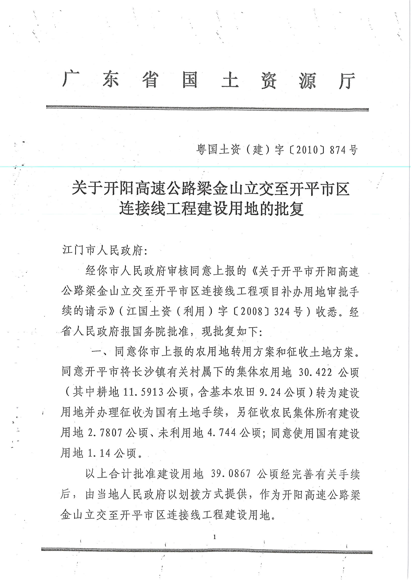 开阳高速公路梁金山立交至开平市区连接线工程建设用地的批复