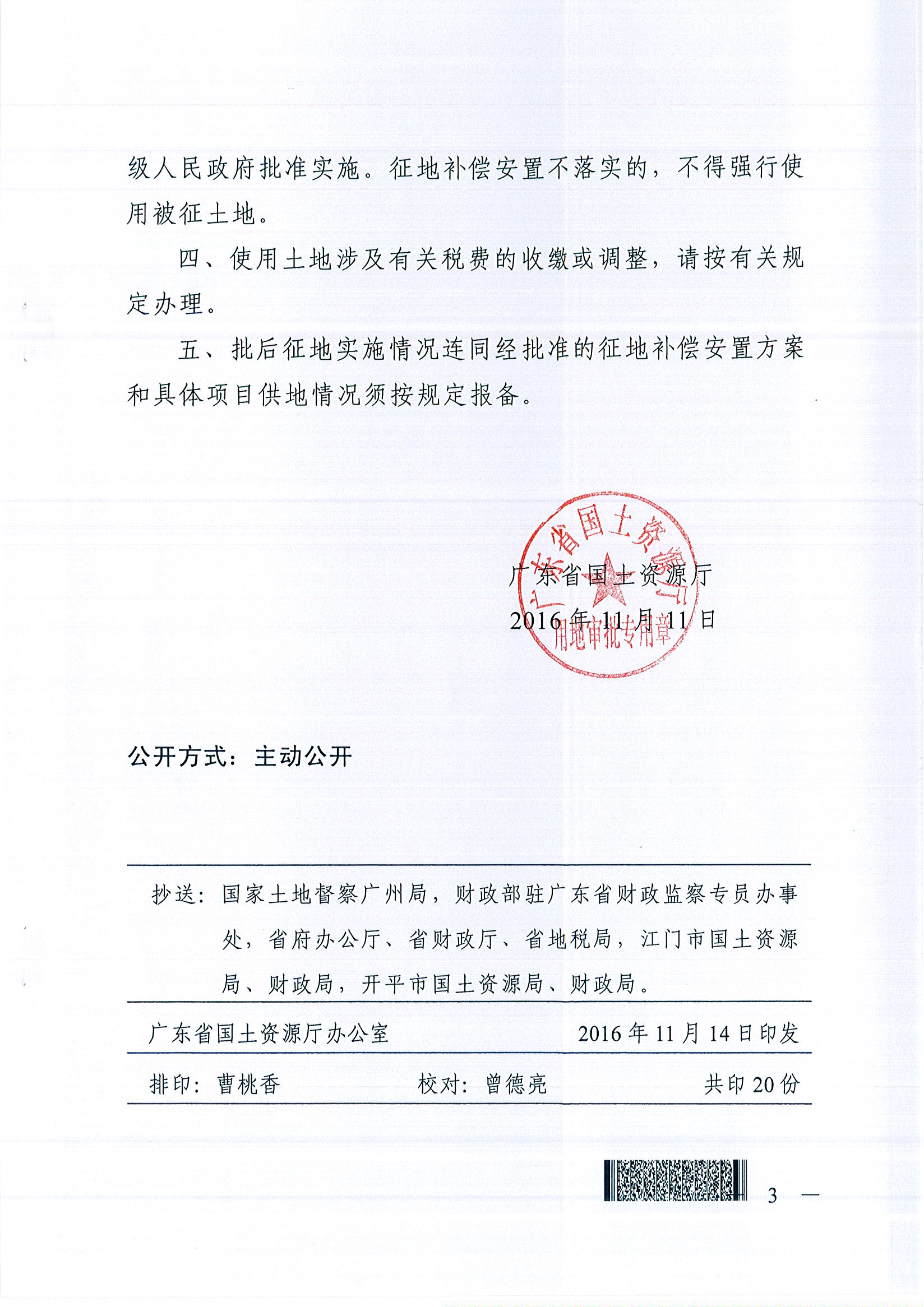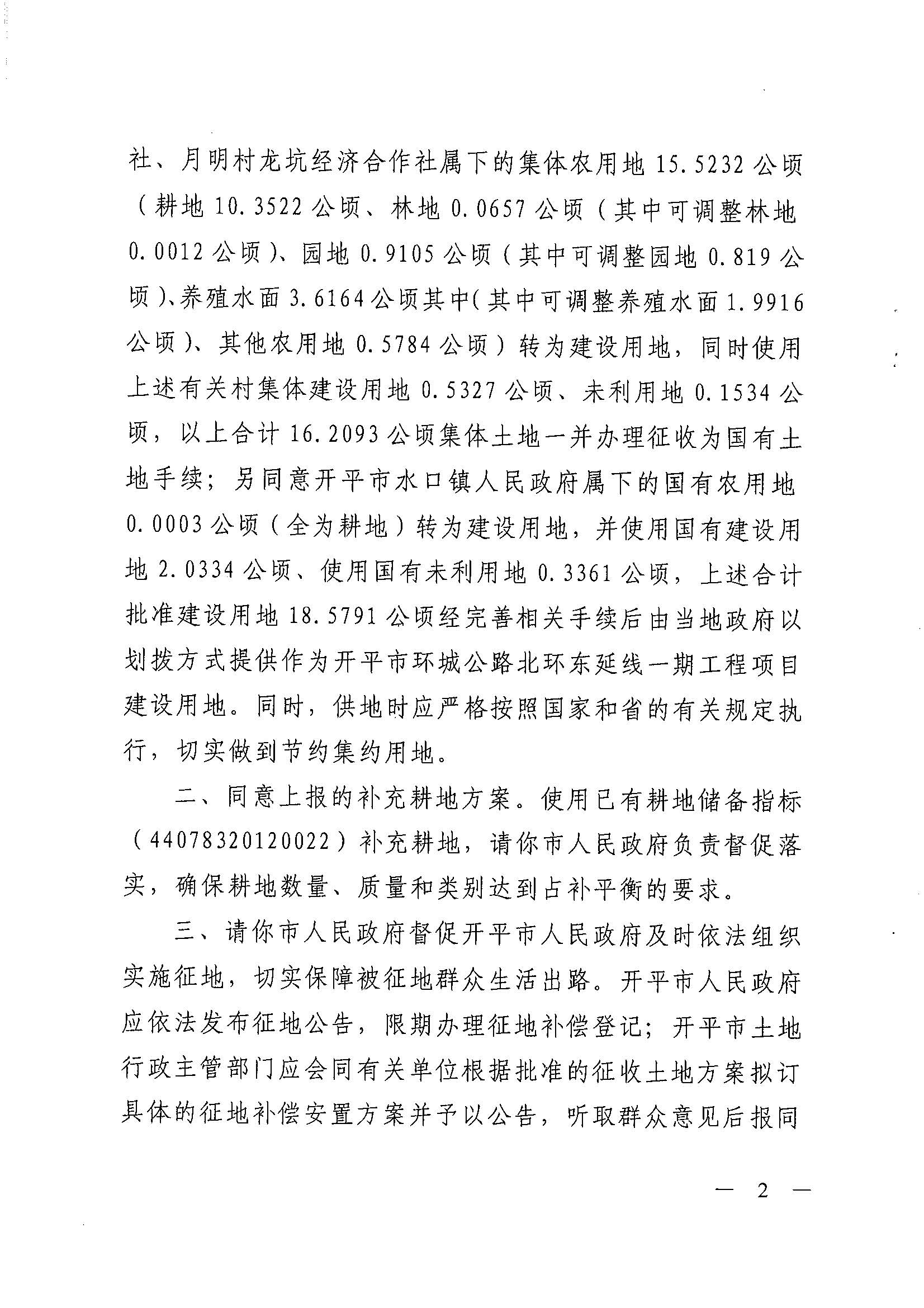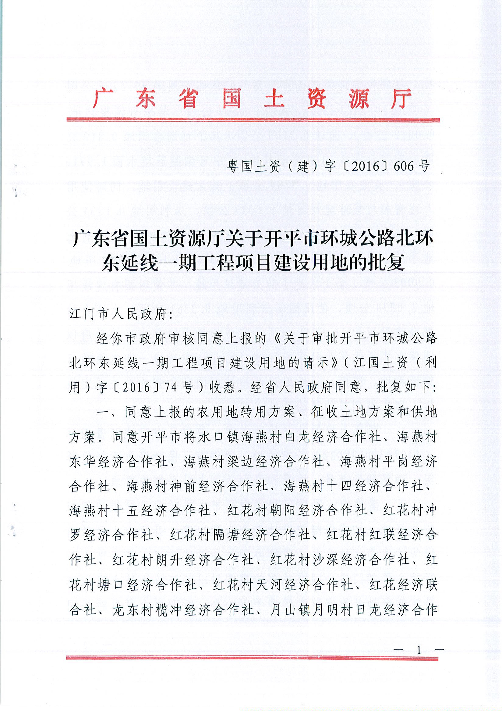 广东省国土资源厅关于开平市环城公路北环东延线一期工程项目建设用地的批复