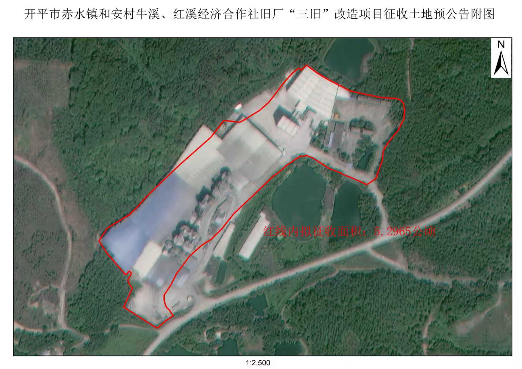 一、拟征收土地的面积、位置和范围:开平市赤水镇和安村牛溪、红溪经济合作社属下的集体土地,面积5.2965公顷,位于开平市赤水镇和安村牛溪村崩山工业区(四至范围详见附图)。实际征收土地范围以最终批准文件为准。