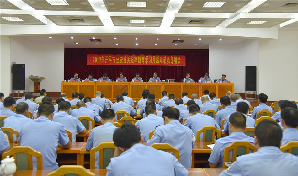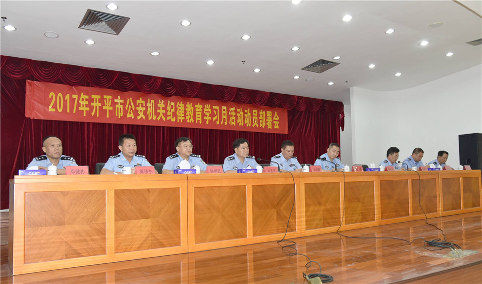 为深入贯彻政治建警、从严治警的方针,根据江门市局纪委关于纪律教育学习月活动的部署,8月10日上午,开平市公安局召开全市公安机关纪律教育学习月活动动员部署会,江门市公安局党委委员、纪委书记余启超出席并作指示,开平市副市长、公安局局长陈勇作动员讲话,全体局领导、局全体现职正股以上(含现职正股)领导干部参加动员会,会议由吴艺平政委主持。