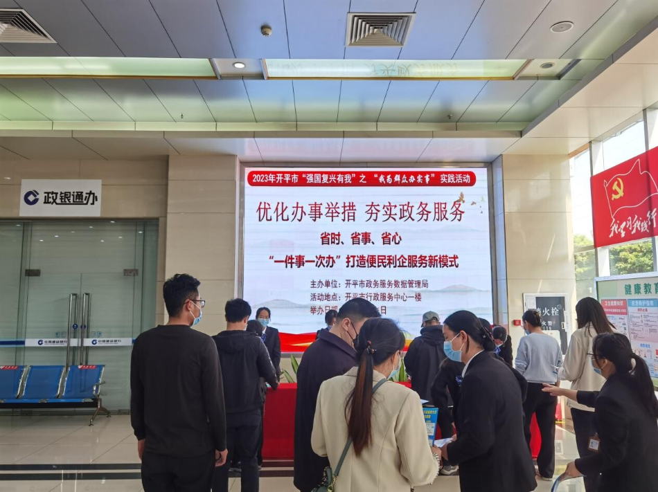 为进一步提升政务服务效能,实现“一件事一次办”成,3月1日上午,开平市政数局在开平市行政服务大厅一楼开展以“一件事一次办”便民利企服务新模式为主题的“强国复兴有我”之“我为群众办实事”实践活动。活动现场,工作人员向办事群众着重讲解“一件事一次办”服务新模式可办理事项清单和办理流程。 工作人员向办事群众详细讲解“一件事一次办”服务新模式 “一件事一次办”改革以来,开平市政数局以高频民生事项和涉企事项为重点,梳理“一件事”主题目录清单,主动对接各业务部门,将涉及多个部门、需经过多个环节办理的“一揽子事”整合成“一件事”,并在开平市行政服务大厅设置了“一件事”主题服务窗口,实行“一号申请、一套资料、一窗受理”办理流程。申请人只需进一扇门,跑一个窗,交一套资料,即可完成全流程业务办理,实现“最多跑一次”的政务服务目标。 工作人员指导活动现场办事群众自助办证 “实在太方便了!以前办理证件还需要自己在外面找照相馆拍证件照,现在在行政服务大厅就可以一次性拍好证件照、办好证件,不用多头跑,大大缩短办证时间!”活动现场的办事群众兴奋地说道。 为深入推进政务服务智能化、便捷化,将“一次办”落到实处,开平市行政服务大厅24小时政务服务自助区设有政务服务一体机、“粤智助”政务服务自助机、居民身份证自助申办拍照一体机等便民设施,让群众尽享“互联网+政务服务”带来的极速效率。 下一步,开平市政数局将继续坚持以企业和群众的需求为导向,深入推进“一件事一次办”改革,进一步集成办理“一件事”所涉及的政务服务事项,推动政务服务模式优化升级,提升企业和群众的办事便利度。