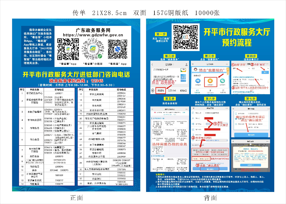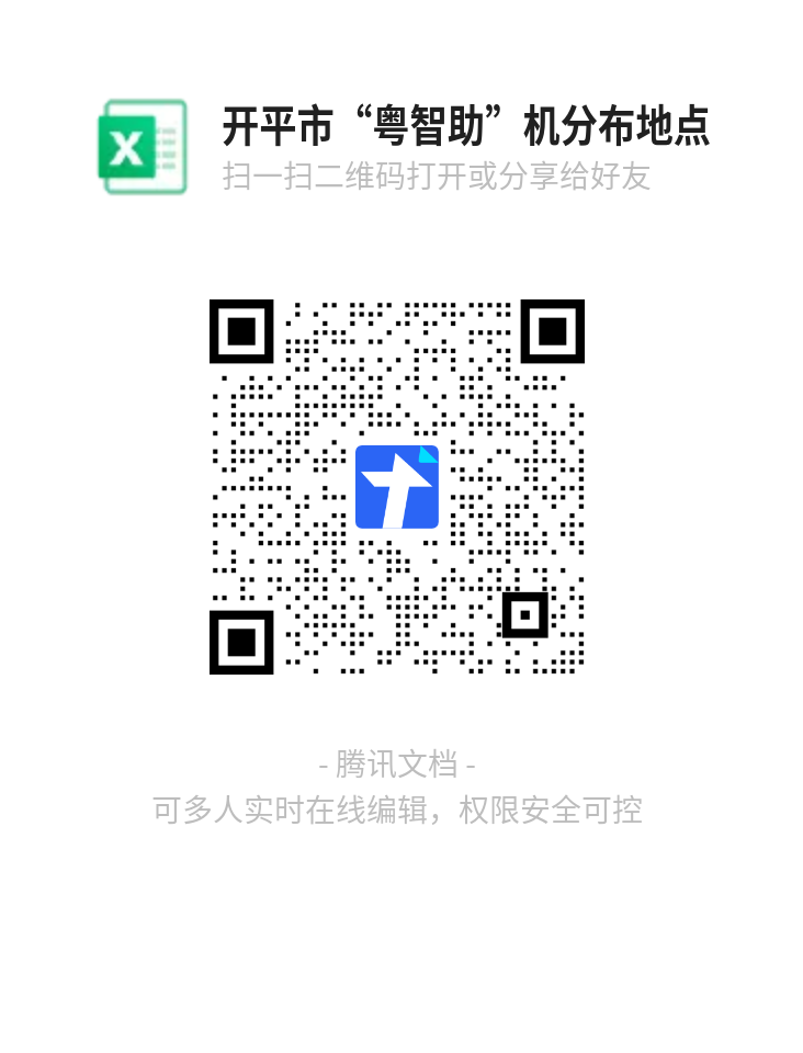 办事主要包括: 打印身份证复印件、社保个人权益单、无偿献血证等; 查询参保缴费记录、社保卡信息、不动产信息; 办理城乡居民养老保险金资格认证、企业职工领取养老保险待遇资格认证等服务; 看病问诊可以预约挂号、网上看病和打印医院检验报告(广东省第二人民医院)。 农产品销售可以帮助群众将自家的农产品卖出去。 阅读主要包括: 习近平总书记系列重要讲话精神、党的二十大精神、党史知识、生活百科和中小学课程等。 四、“粤智助”的特点有哪些? 突显“整体政府”理念,整合全省各级政府部门的服务,充分使用全省各级政府部门的政务数据,群众办事无需关心是哪一个单位提供的服务。 刷身份证就可以办事,另外还可以选择亮粤省事码、机器刷脸或者手机微信扫码等身份认证方法。 操作界面设计简洁、易懂、易操作,提供全流程帮助视频或分步帮助视频让群众轻松操作。 “我的”个人中心可以单独显示群众曾经办过的事务、个人证件和曾经填写过的个人信息等。 打印功能强大,打印出来的证件或材料带有公章。 提供老人版,专门设有大字号、大图标、高对比度的“老人模式”,帮助老年人轻松跨过“数字鸿沟”。 实现跨市通办,本地群众可以办理省内其他城市的服务,也可以在省内其他城市办理本市的服务。 截至目前,我市“粤智助”政府服务自助机顺利在全市15个镇(街)共251个行政村完成安装全覆盖,业务量超过25万宗,累计服务群众10万多人次。接下来,市行政服务中心还将根据群众的迫切需要,争取梳理更多便民利民的高频服务事项,切实提高群众的获得感和幸福感。 全市“粤智助”分布点来了! 来看看离你最近的“政务机器”在哪里~ 开平市行政服务大厅进驻部门咨询电话