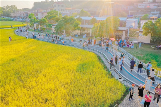 大沙镇基于好生态,充分利用好山、好水、好空气,推动“农旅融合”“茶旅融合”发展,该镇获评广东省“一村一品、一镇一业”茶叶专业镇、全省首个全域生态茶园创建专业镇。 大塘面村通过践行“两山”理念,将美丽生态转化成“美丽经济”,发展生态旅游产业。 清风徐来,茶韵飘香,鱼跃鹭飞,湖山与共……这是如今大沙镇的美丽乡村图景。 近年来,大沙镇在“两山”双向转化路径上狠下功夫,在党建引领下既保护生态又发展经济,持续走深走实绿色高质量发展之路,带领群众奔向富裕生活。行之有效的路径让大沙镇收获累累硕果,先后获得“广东省森林小镇”“广东十大茶乡”“岭南生态气候标志·城市天然氧吧”等称号,2021年大沙茶获评国家农产品地理标志产品,2022年开平市茶叶产业园成功入选省级现代农业产业园建设名单。大沙儿女铆足干劲,致力打造“山水生态家园”,持续推动绿色低碳高质量发展。 文/图 翁丹萍 马嘉雯 A 坚持党建引领促振兴 美丽乡村绘就好“丰”景 走好乡村振兴路,践行“两山”理念,关键在党。近年来,大沙镇坚持党建引领生态发展、农文旅融合,把美丽乡村建设与产业发展、农民增收和民生改善紧密结合,红色党建引领绿色新发展,坚定不移贯彻“两山”发展理念,建设“产业兴旺、生态宜居、乡风文明、治理有效、生活富裕”的新时代美丽乡村。 延伸党组织“神经末梢”,激活基层治理活力。大沙镇推动党的组织向村民小组覆盖,在条件成熟的村民小组设立党组织,强化党对基层工作的领导。让党组织在“三清三拆三整治”、人居环境整治、乡村振兴等工作中充分发挥战斗堡垒作用,凝聚党群合力保护好绿水青山生态底色和田园风光,不断完善农村基础设施建设,打造自然和乡村相互融合、传统与现代交相辉映的风景,留住独特的乡土味道和乡村风貌,将生态优势转化为可持续发展优势。其中,大塘面村党支部带领村民成立市集股份制合作社,带动村民争取多方支持,发展生态旅游产业,让村民在“家门口”吃上“生态饭”,形成共建共享良好格局。 依托丰富自然资源和生态优势,以党建引领“绿色经济”发展壮大。大沙镇实施“双培双带”党建工程,推行党员、群众“1+N”结对帮带模式,由村民小组长带头,企业家党员、种茶能手提供技术等方面指导,规模化种植茶树,让村民共享生态优势红利和“绿色经济”成果。其中,岗坪村目前有61户110多人从事茶产业,茶树种植规模达200公顷(3000亩),村民月收入最高可达6000-7000元,有效把“绿水青山”转化为“金山银山”。 此外,近年来,大沙镇坚持党建引领基层治理,将工作重心下沉到村民小组,发挥党组织引领作用,推动各级党员干部进“网”入“格”,畅通基层治理“毛细血管”。采取“中心+网格化”模式,各村民小组长、党员志愿者、社会志愿者等参与其中,建立纵向到底、横向到边的工作网格,加强基层治理,凝聚共建生态宜居美丽乡村的合力。其中,在疫情常态化防控背景下,由网格党组织引领,村民小组长统筹落实,网格内党员、村民积极参与疫情防控工作,推动各项防控措施落实到位。 大沙镇深挖本土红色资源,建设通二梁公祠、大塘面村党建广场和大沙人民革命斗争史展览馆等党建阵地,吸引大批党组织和党员前来参观学习,成为当地党员干部的“红色加油站”、充电蓄能的“精神港湾”,不断提升党员的思想教育水平。其中,大沙人民革命斗争史展览馆、通二梁公祠被评为开平市党员教育基地。 B 巧打“生态牌”强镇富民 美丽经济实现“新跨越” 作为开平市的边远山区、革命老区、水库移民区,又是重点水源保护区和生态发展区,如何破局实现经济发展?大沙镇交出了一张令人满意的“绿色答卷”。 生态是大沙镇的底色,更是大沙镇的致富宝藏。近年来,大沙镇深入践行“两山”理念,探索双向转化有效路径。2020年,开平市获批创建全国“绿水青山就是金山银山”实践创新基地,大沙镇是其中的重要区域。该镇强化综合治理,保障生态环境质量持续稳定向好:深入开展河长制工作,切实保护水源地水质;农村和镇圩污水处理设施和污水管网实现全覆盖;推进河流治理和“两山”碧道建设、农村“厕所革命”工程、全镇域集中供水工程和榄杭吸水点改造工程等项目,提升垃圾清运能力,健全完善农村保洁考核机制,人居环境不断优化美化。 大沙镇基于好生态,充分利用好山、好水、好空气,推动“农旅融合”“茶旅融合”发展。近年来,该镇引进大沙恒创天达田园综合体、广东津日食品、开平市碉乡园食品、大沙里食品、大沙里欢茶谷、佛岭山农旅、大塘面村民宿及露营等项目,总投资超5.5亿元,推进乡村产业蓬勃发展。 特色种植业尤为亮眼,大沙镇推动茶叶、果蔬、大米、花卉、南药五大现代农业种植基地建设,成功打造大沙茶、大沙贡柑、大沙丝苗米等特色农产品品牌。全镇可采摘茶园(田)面积超666.67公顷(10000亩),贡柑、沃柑、青梅等水果种植面积约533.33公顷(8000多亩),花卉苗木种植面积133.33公顷(2000多亩)。2021年,全镇现代农业产值达4亿元,其中,茶产业和以贡柑为主的水果产业产值突破1.9亿元;观山望水、品茶赏花的全域旅游格局初步形成;大沙镇获评广东省“一村一品、一镇一业”茶叶专业镇、全省首个全域生态茶园创建专业镇,助力开平市茶叶产业园入选2022年