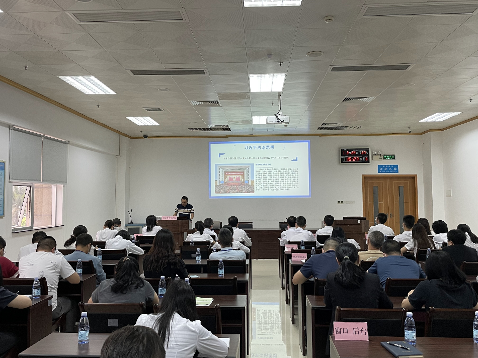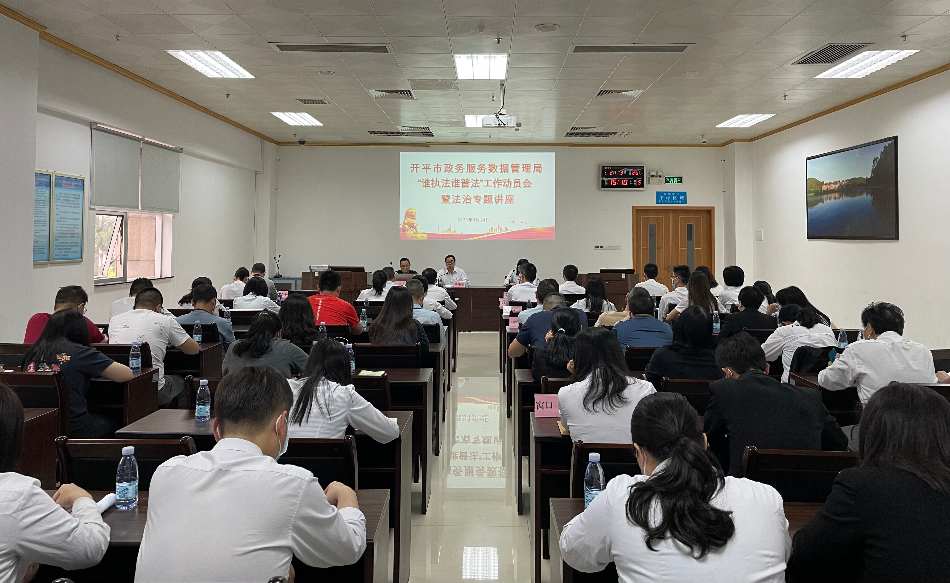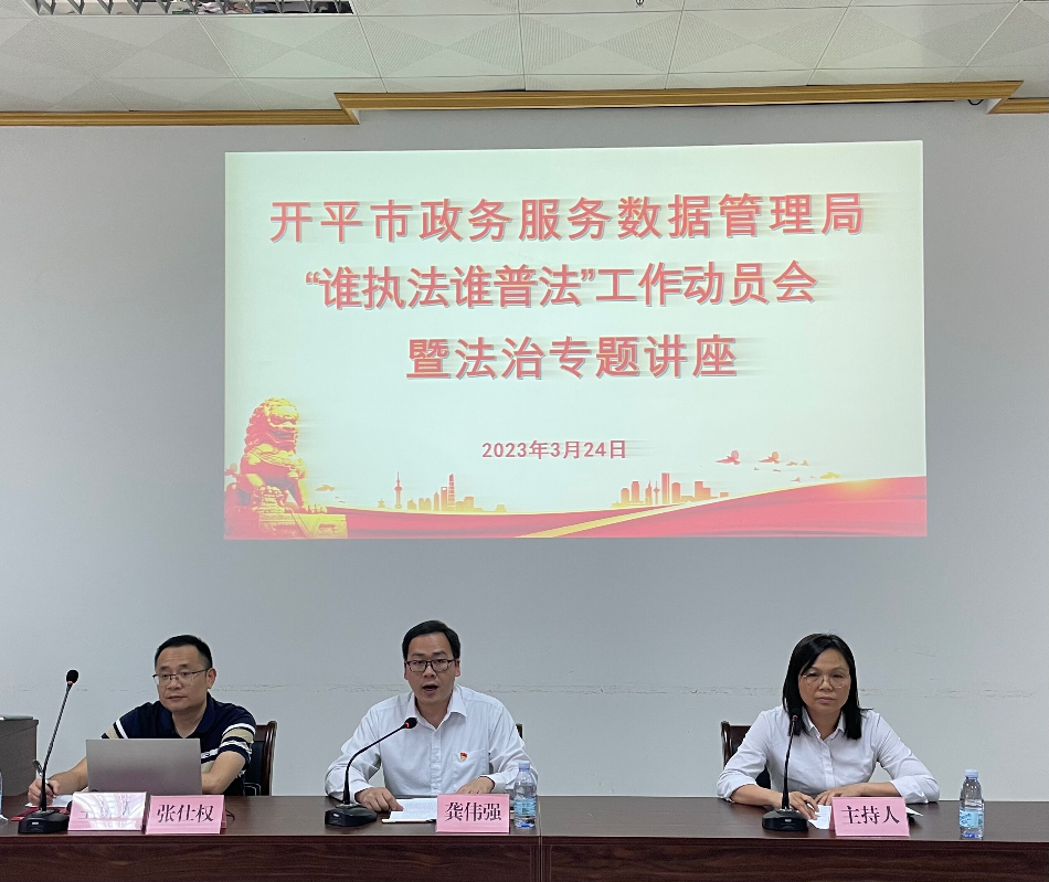 为深入学习宣传习近平法治思想,进一步落实“谁执法谁普法”“谁服务谁普法”责任,扎实推进法治建设,提高广大干部职工尊法学法守法用法的意识和能力,3月24日下午,市政数局召开普法工作动员会暨法治专题讲座。局机关及下属单位机关全体人员、行政服务中心服务窗口和审办后台负责人参会。 动员会上,局党组书记、局长龚伟强就如何开展好当前和今后一段时期的普法工作提三点意见:一是统一思想,充分认识做好普法工作的重要性。二是认清形势,全力夯实“谁服务谁普法”工作责任制。三是强化配合,凝聚普法宣传工作强大合力。龚伟强同志强调,政数系统全体干部职工要凝心聚力,从严从实,共同把普法工作抓实抓好、抓出特色、抓出成效。 法律讲座邀请了广东星辉律师事务所张仕权律师作法治专题授课。张仕权律师围绕习近平法治思想、《中华人民共和国民法典》(合同编)、《中华人民共和国妇女权益保障法》以及《广东省公共资源交易监督管理暂行办法》四个专题,进行深入浅出、全面细致的分析讲解,并通过列举情景案例,进一步加深干部职工对法律知识的理解,提高学法守法用法的意识和能力,干部职工纷纷表示受益匪浅。 接下来,政数局将进一步健全“谁执法谁普法”工作机制,紧盯民生热点,对标群众需求,将普法工作延伸到政数工作的每一环节,为建设法治政府贡献政数力量。