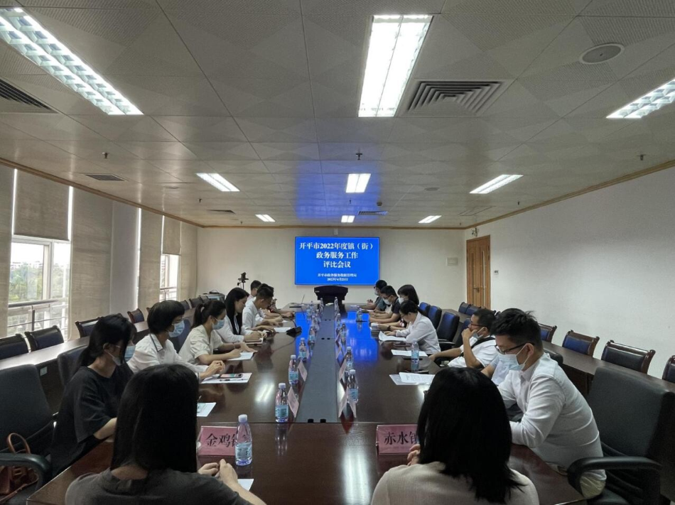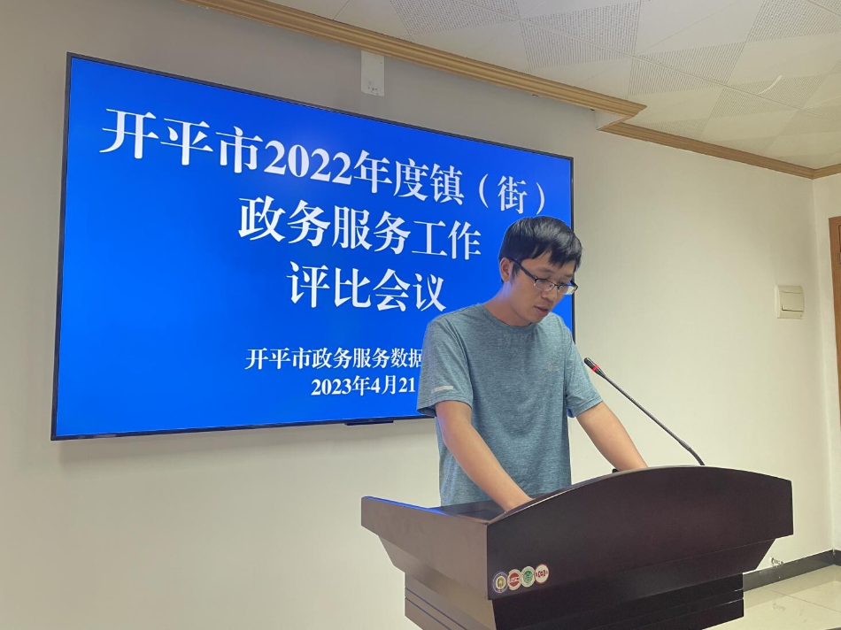 为持续推进基层政务服务工作提质增效,强化为民服务和创先争优意识,市政数局大力推进数字政府建设和“放管服”改革,深入开展“创满意服务”活动。2023年4月21日下午,开平市政数局副局长武胜利主持召开2022年度镇(街)政务服务工作评比会议,市政数局、市行政服务中心有关人员和各镇(街)政务服务工作负责人参加了会议。 会上,“2022年度镇(街)满意公共服务中心”候选镇(街)代表对2022年度的政务服务改革工作进行总结发言,考评小组结合日常工作和总结发言情况进行投票评比,票选出长沙街道公共服务中心、赤坎镇公共服务中心、三埠街道公共服务中心、苍城镇公共服务中心、水口镇公共服务中心和大沙镇公共服务中心等6个“2022年度镇(街)满意公共服务中心”。 通过此次活动,各镇(街)公共服务中心分享了一年以来的服务成果,交流了工作经验。会议希望各镇(街)继续深入学习贯彻党的二十大精神,坚持人民至上,进一步深化政务服务“一网通办”改革,提高“粤智助”和江门市政务服务一体化平台使用率,加强“视频办”宣传与推广应用,加大政务服务标杆大厅建设力度,全面提升基层政务服务水平,用心用情为群众办实事、办好事,不断提升人民群众的幸福感、获得感和满意度,为我市深入实施“百县千镇万村高质量发展工程”贡献一份力量。