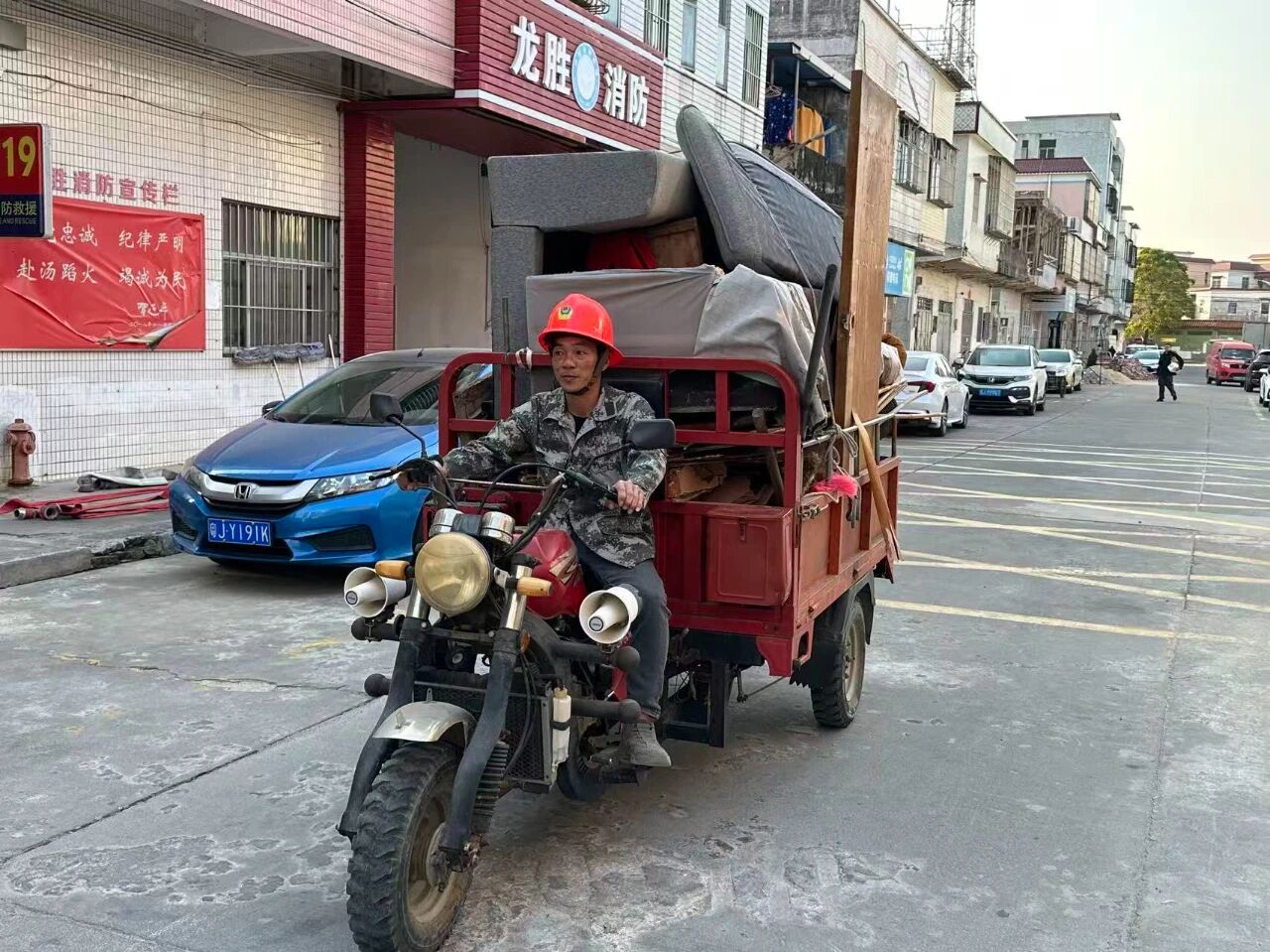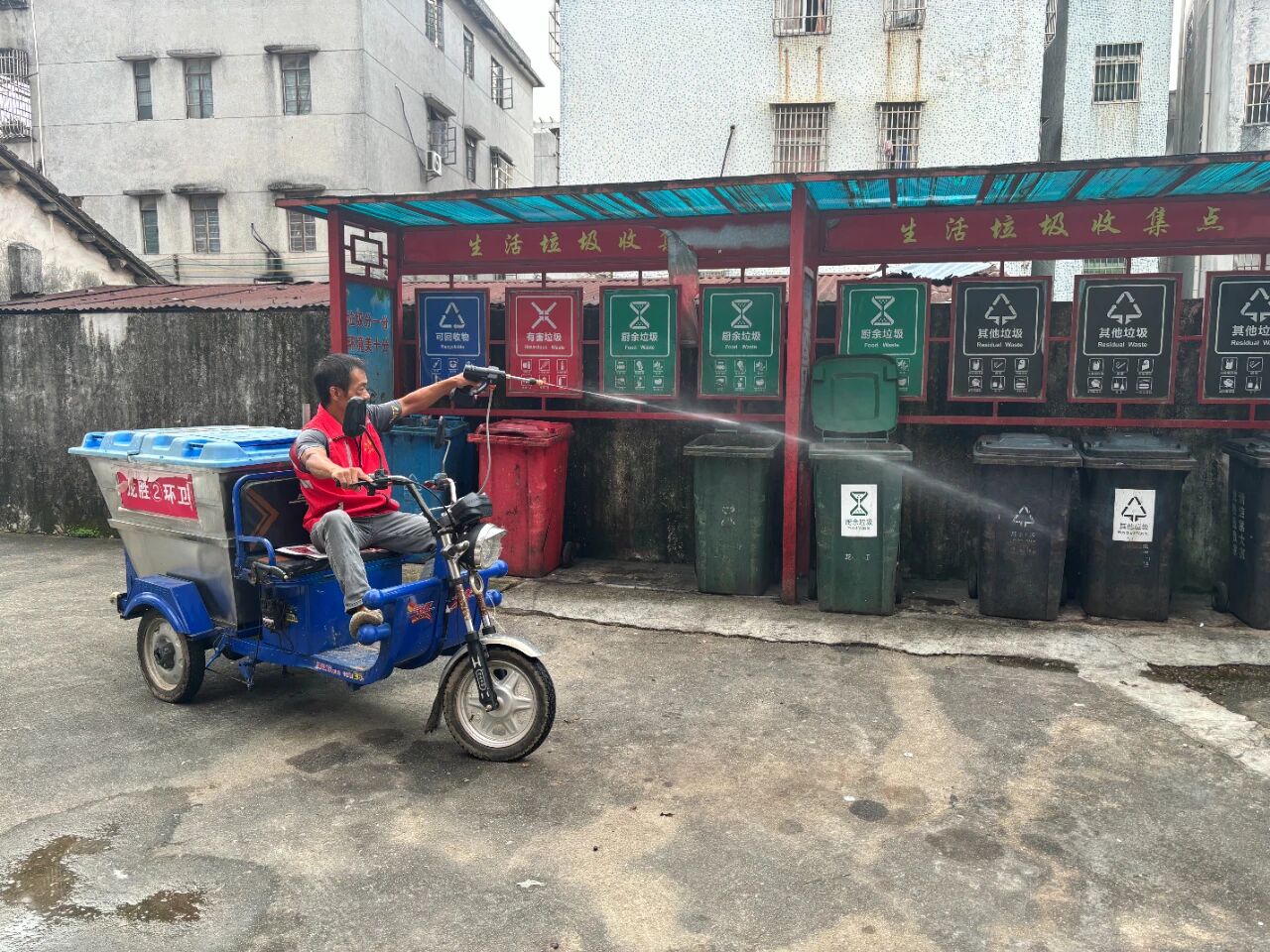 在开平市龙胜墟社区,总能看到一个忙碌的身影,他时而身着迷彩服,在龙胜中学操场上带领新生军训;时而在街巷间俯身清理垃圾,细致监督环境卫生;时而驾驶三轮车穿梭于墟镇,收集清运大件废弃物;时而又背负消杀设备,坚守在防蚊灭蚊一线。这位身影的主人,正是龙胜墟社区“两委”干部、退伍军人——吴润球。