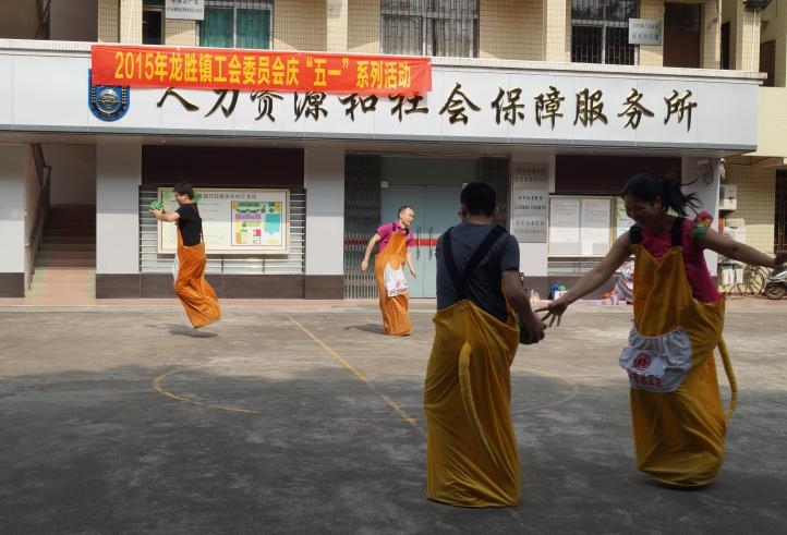 为庆祝“五一”国际劳动节,丰富职工的文化生活,4月27日下午,龙胜镇工会举行庆“五一”职工趣味运动会,来自辖区内的100多名职工组成四支参赛队伍在游戏中欢庆劳动节。镇工委会主席冯我占、镇党委班子都积极加入到比赛中,和职工们打成一片,增添了节日气氛。