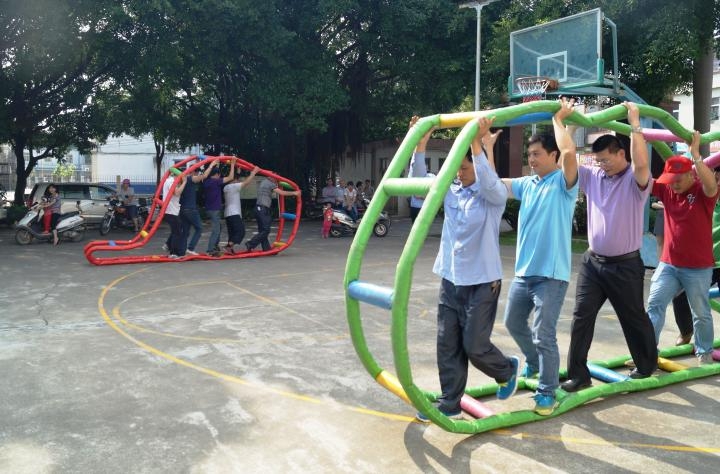 运动会共设计了“袋鼠运瓜”、“财源滚滚”、“摸石过河”、“流水作业”、“趣味投篮”五个项目。每个项目都趣味十足,而且都是团队项目,非常考验团队间的配合。赛场上欢呼声不断,经过激情快乐的角逐,最后由卫生计生队获得第一名。
