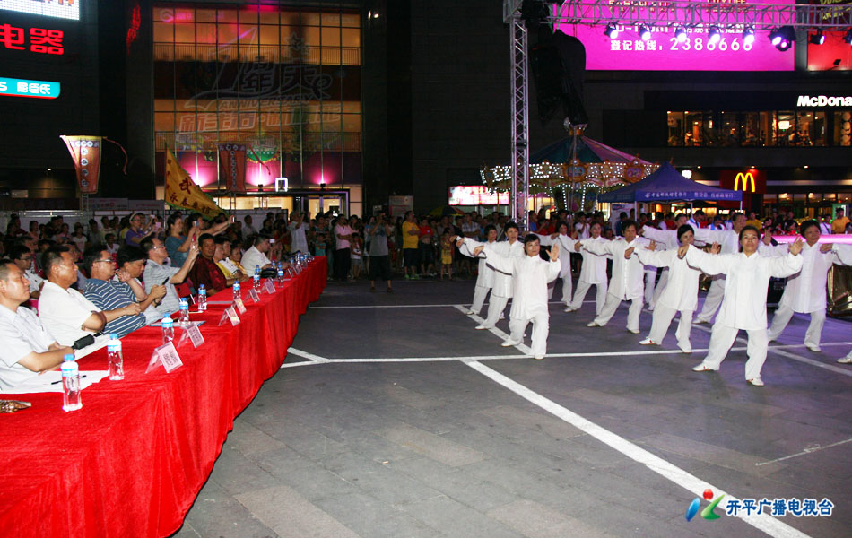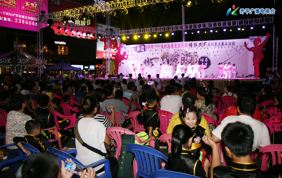 【开平广播电台 梁立媛】6月6月晚上,“非遗保护月——文化志愿者在行动,传统武术文化交流展示活动”在东汇城东门广场举行,来自佛山、江门、新会、台山、开平等地武林高手相聚开平东汇城,一起切磋交流武艺。活动当天还有开平非物质文化遗产大型图片展。