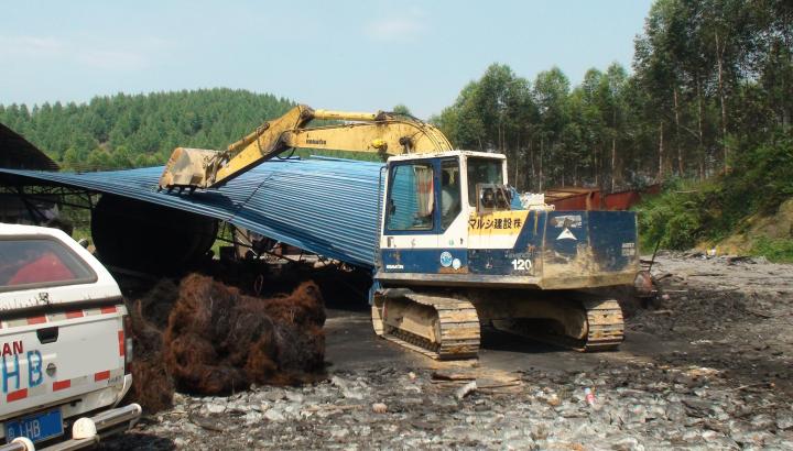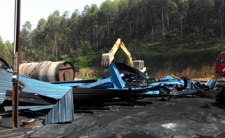 6月30日下午,龙胜镇组织镇城环局、派出所、工商所、供电所等部门单位开展联合执法行动,依法对黄村村委会辖区内一间无牌的提炼橡胶油厂进行清拆,清拆建筑物200多平方米、炼油设备2台。【信息员:吴健楚】