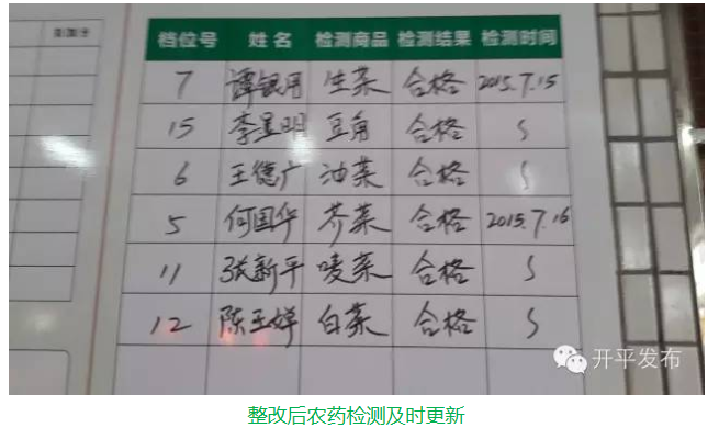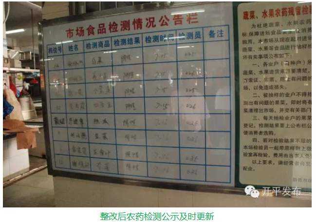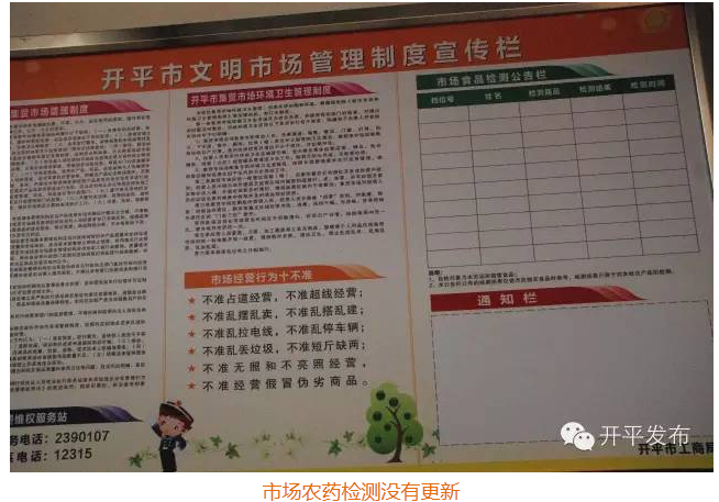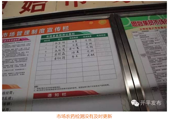 3、没有健康宣传栏,卫生、健康宣传不足。市场农药检测公示没有更新。