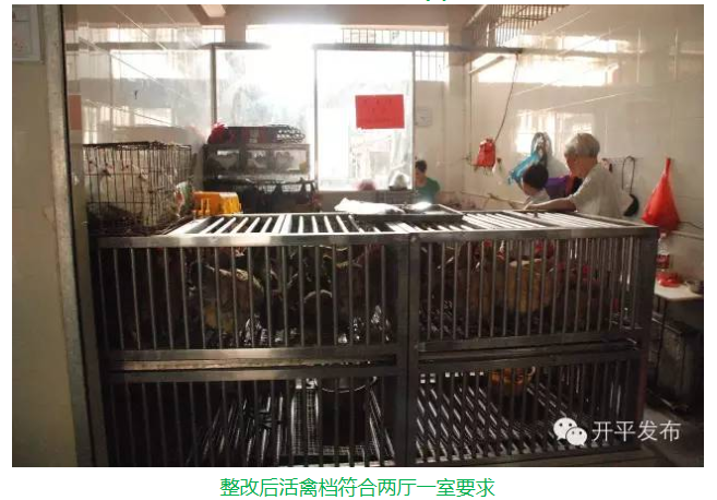3、活禽档简陋,没有设立“两房一厅”没有实行存栏、宰杀、售卖三分离,禽笼底下没有安装易清洗粪池。