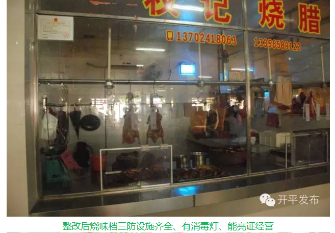 2、烧味档、熟食档“三防”设施齐全,能亮证经营等基本符合要求。