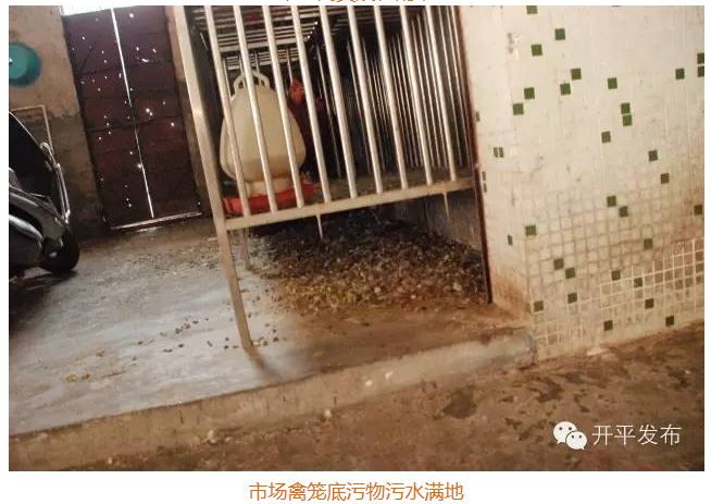 3、活禽档笼底没有安装易清洗粪池,污物污水横流,影响市场环境卫生。