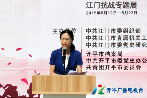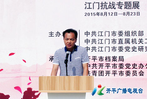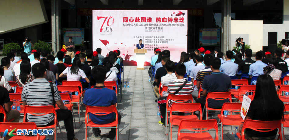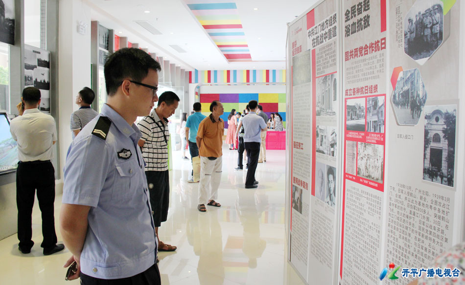 【开平广播电视台 余映意】8月12日上午,“同心赴国难,热血铸忠魂——纪念中国人民抗日战争胜利暨世界反法西斯战争胜利70周年江门抗战专题巡回展”在开平市青少年宫开幕。这次展览对市民开放,展期至8月23日结束。