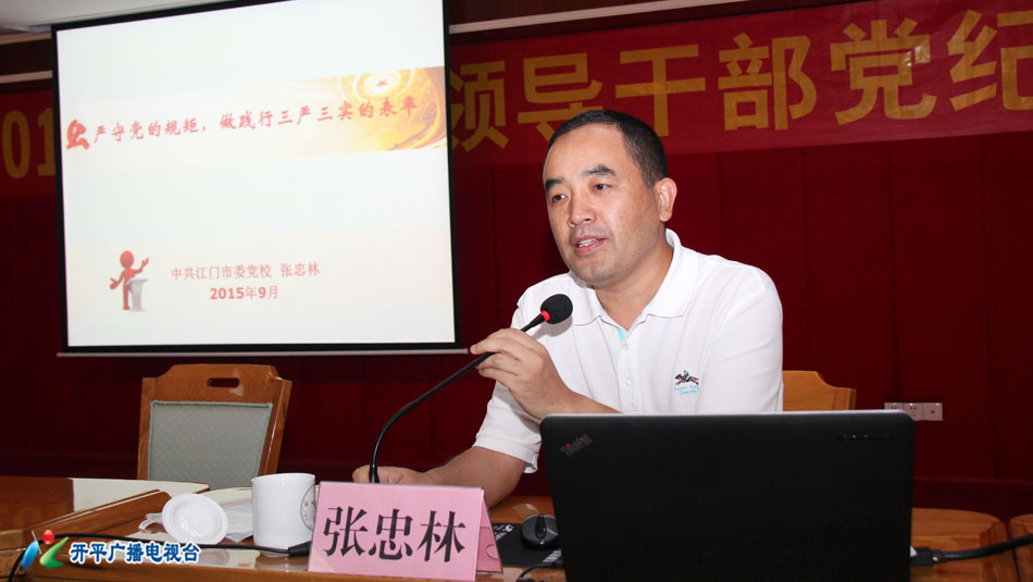 江门市委党校常务副校长张忠林作题为《严守党的规矩,做践行三严三实的表率》的专题授课