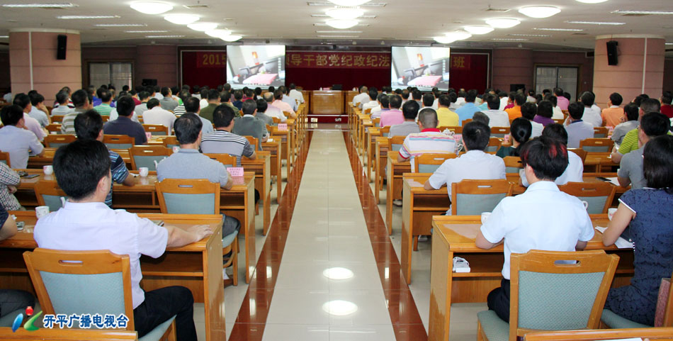 【开平广播电视台 余映意 陈淑子】9月1日下午,开平市举办领导干部党纪政纪法纪教育培训班,邀请江门市委党校常务副校长张忠林作题为《严守党的规矩,做践行三严三实的表率》的专题授课。市委书记、市人大常委会主任黄耀雄作总结讲话。