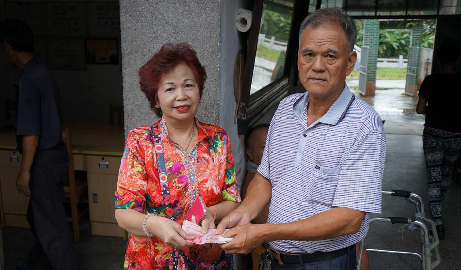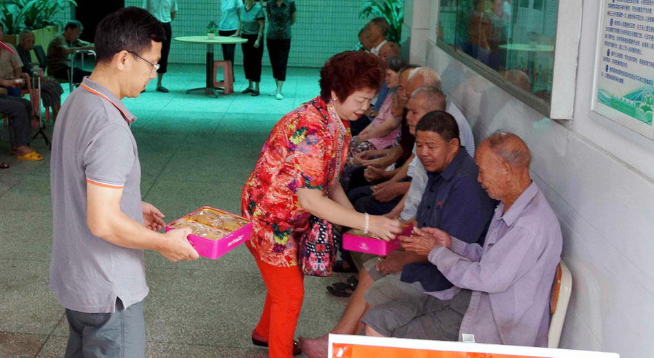 9月2日下午,澳门乡亲邝英女士冒雨回到开平,到水口镇敬老院、长沙镇敬老院、赤坎镇敬老院,提前为敬老院的老人送上国庆节和中秋节慰问品和慰问金,并送上节日的祝福。