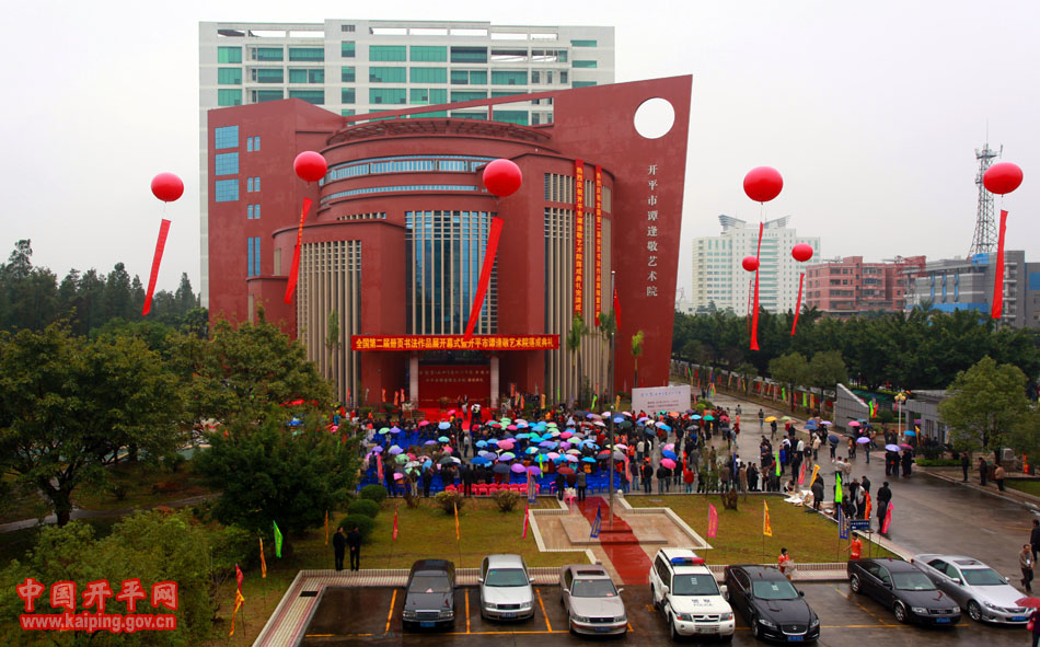 随后,调研人员一行来到开平市谭逢敬艺术院。据介绍,谭逢敬艺术院由香港开平同乡会永远荣誉会长谭逢敬先生捐资兴建,2012年11月27日落成。该艺术院是集开平市文联、美术馆、文艺家之家等于一体的综合性艺术大楼,也是开平文艺人才活动、培训、创作、展示、交流、收藏的基地,艺术院实行免费开放,是开平广大市民欣赏高雅文化艺术的平台。艺术院建成至今,每个月都举办不少于4次的名家书画展、艺术作品展等,受到社会各界的好评。