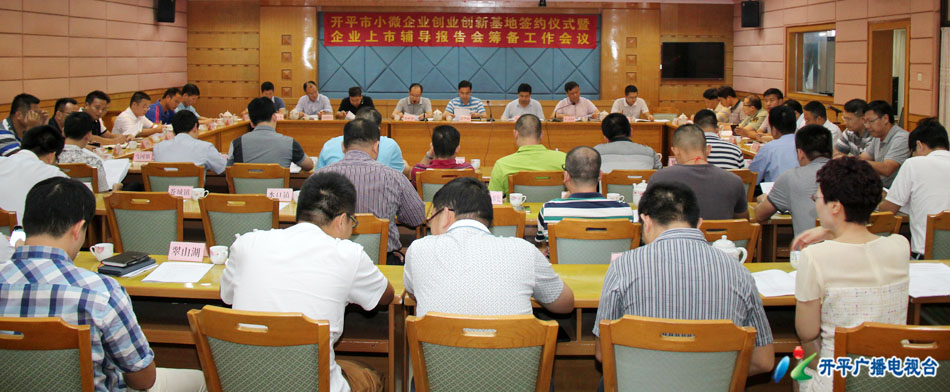 【开平广播电视台 余映意】记者从9月14日下午召开的开平市小微企业仓业创新基地签约仪式暨企业上市辅导报告会筹备工作会议上获悉,开平市将于9月23日上午在碧桂园大酒店举办小微企业创业创新基地签约仪式暨企业上市辅导报告会,加强开平市小微企业创业创新基地建设,促进市实体经济做大做强。市委常委凌华威出席会议。