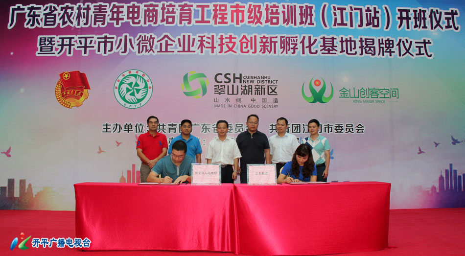 近年来,农村电商蓬勃兴起,既促进了农民增收,也带动了农村经济发展。团省委和京东集团签订了农村青年电商创业致富“领头雁”培育工程战略合作协议,构建农村青年电商创业的一站式服务体系,推动农业现代化发展。活动当天,团江门市委、开平市政府分别与京东集团签署战略合作协议。与会领导嘉宾还为金山创客空间(开平市小微企业科技创新孵化基地)的正式启用揭牌。