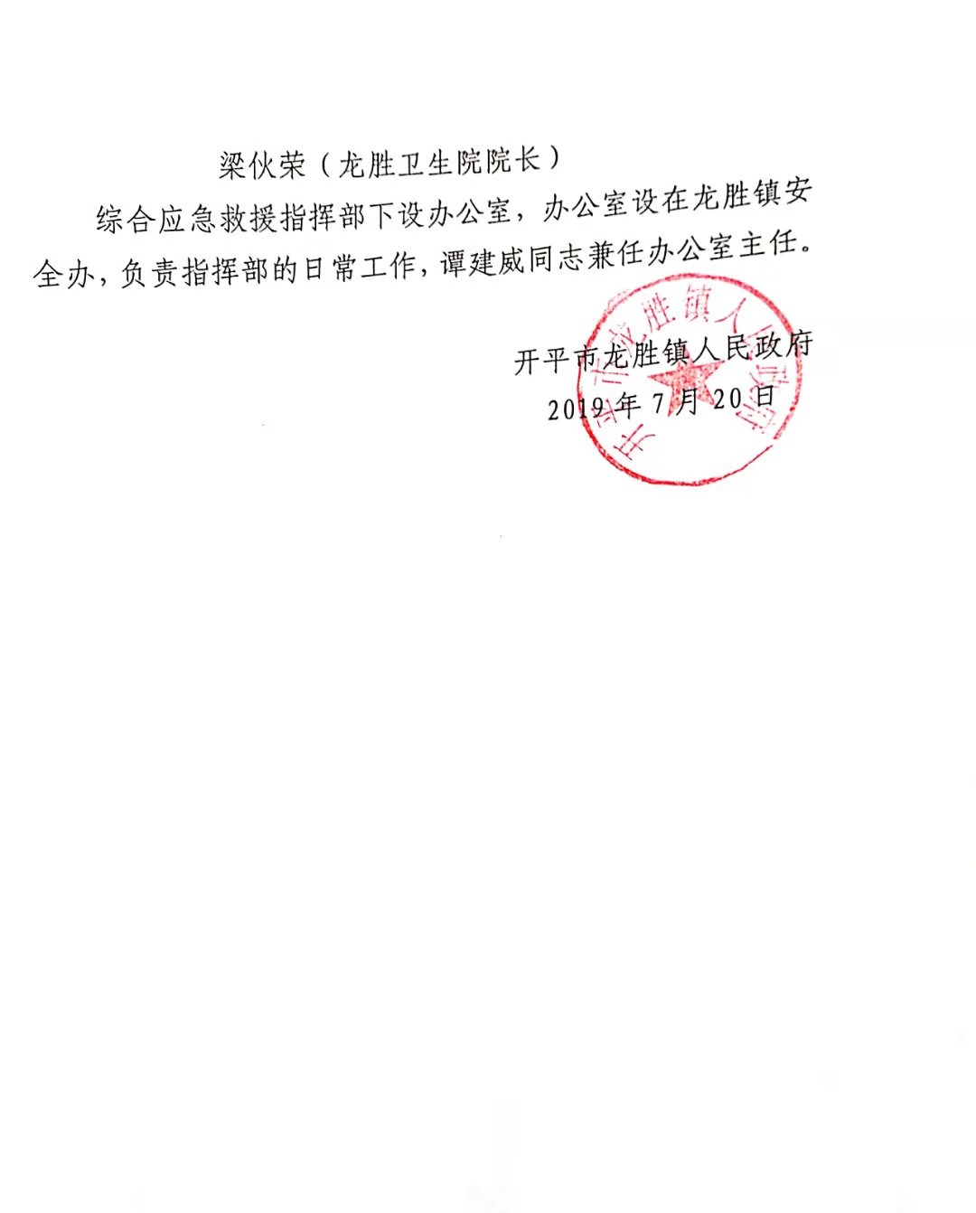关于成立龙胜镇综合性应急救援指挥部的通知