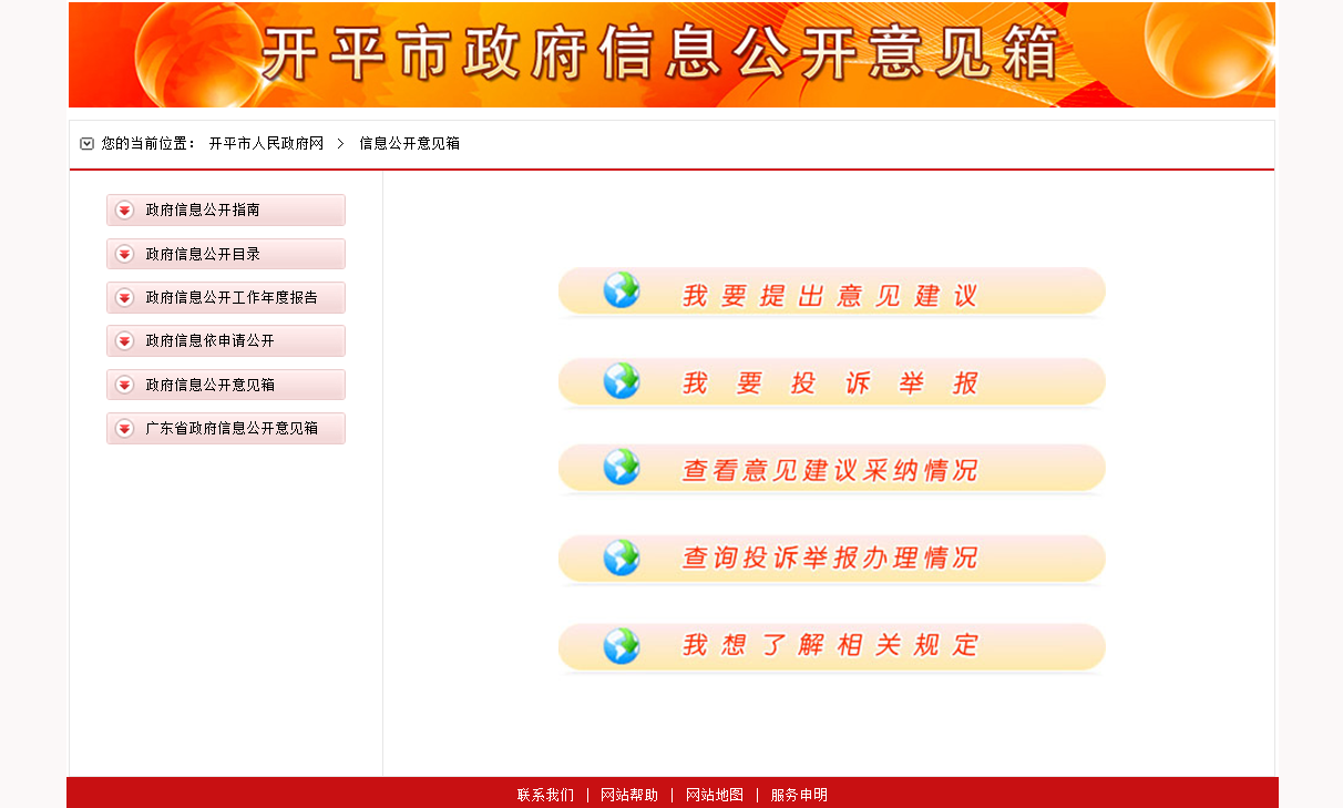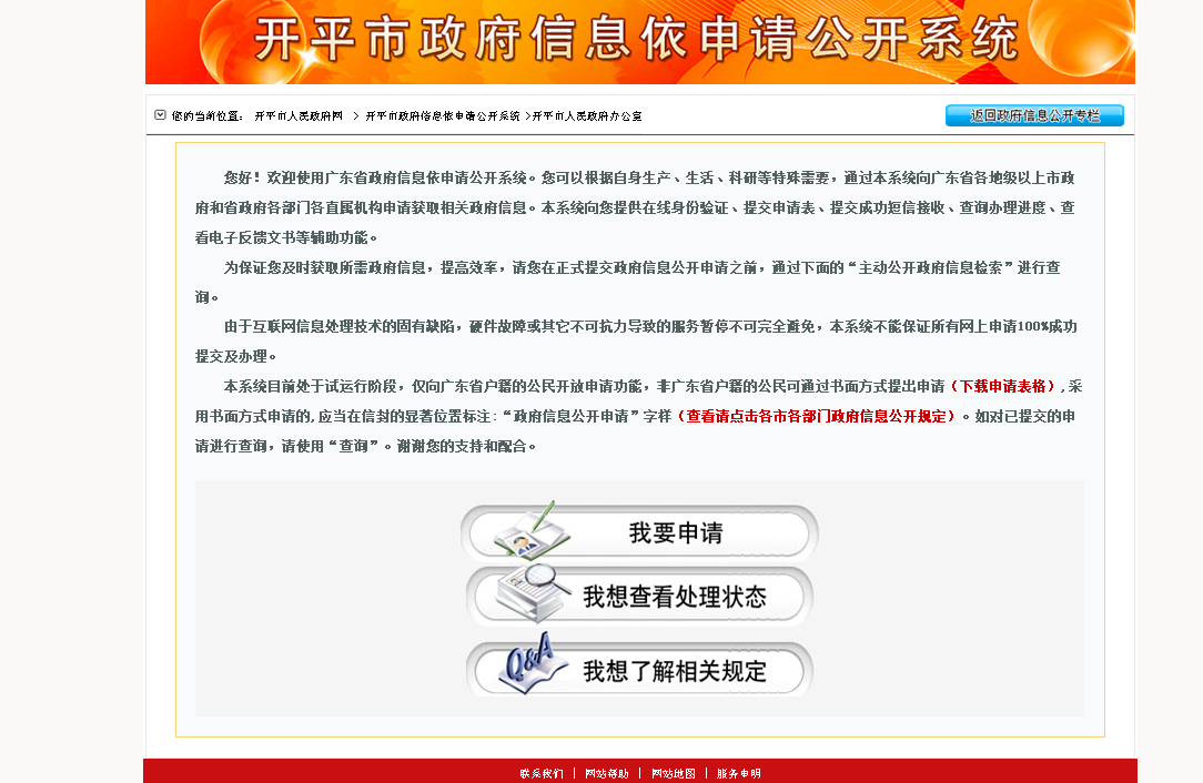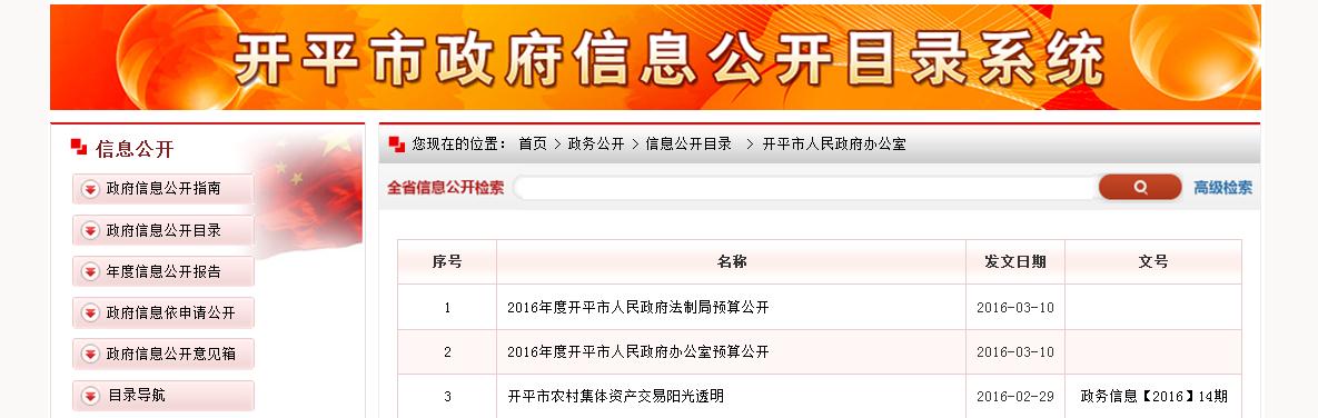 2、完善政府信息公开业务系统。完成开平市政府信息公开目录系统升级及新建开平市政府信息依申请公开系统和开平市政府信息公开意见箱,加强我市政务公开工作。(见图3、4、5)