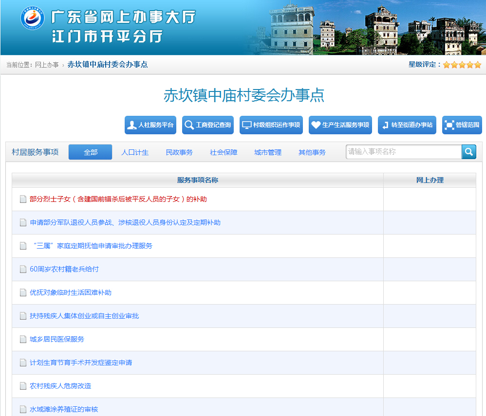 4、全面推进基层公共服务平台建设。实现村(社区)、镇级与市级三级光纤联网,打造一流的阳光便民服务中心。将各项服务事项和工作指南统一发布到三级服务平台,方便群众“邑门式”办事。
