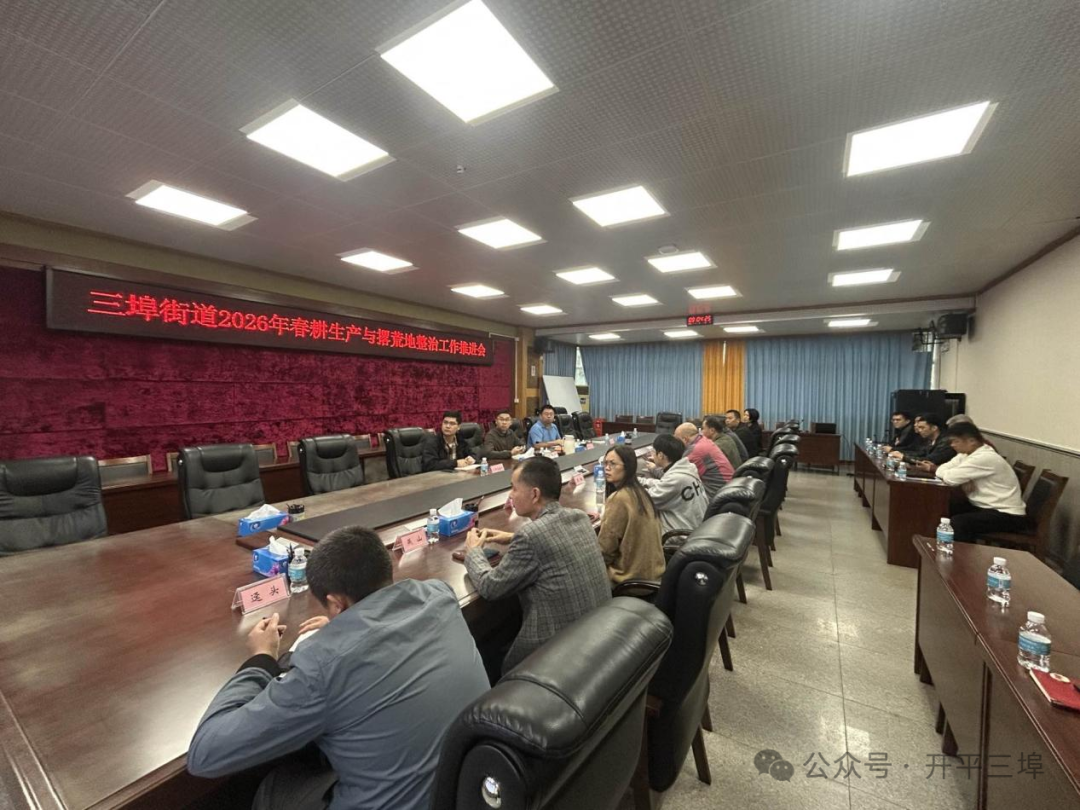 春潮涌动备耕忙,实干笃行启新程。为深入贯彻落实市委农村工作会议及全市春耕生产相关工作部署,严格落实粮食安全党政同责要求,3月3日上午,三埠街道组织召开2026年春耕生产与撂荒地整治工作推进会,深入分析当前春季农业生产形势,紧扣市级工作精神,抓抢农时、部署任务,打响备春耕攻坚战,抓实撂荒地整治,切实守牢粮食安全底线,赋能乡村振兴高质量发展,为全市农业高质量发展和“百千万工程”落地见效贡献三埠力量。三埠街道党工委副书记、办事处主任吴文泉,副主任黄志成,农办,自然资源所和各村社区相关负责人参加会议。
