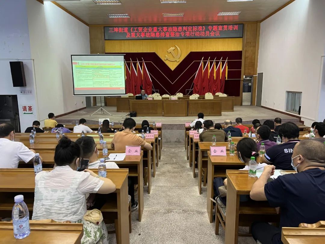 近日,应急管理部印发了《工贸企业重大事故隐患判定标准》(中华人民共和国应急管理部令第10号),自2023年5月15日起施行。 为进一步提升应急管理人员对重大风险辨识管控的能力,深化隐患排查治理实效,5月16日上午,三埠街道召开《工贸企业重大事故隐患判定标准》专题宣贯培训及重大事故隐患排查整治专项行动动员会议,推动企业落实安全生产主体责任,及时消除各类安全隐患,助力企业高质量发展。街道安委会成员部门、各村(社区)、基层站所、企业等负责人共100多人参加了会议。 街道党工委委员、办事处副主任周觉能通报了近期国内多起较大以上安全事故,总结了三埠街道4月以来的安全生产和消防安全工作情况,并部署了下一阶段的安全生产和消防安全工作。会议以近期国内安全事故为鉴,提出了七方面工作要求:一是整治工贸企业重大事故隐患。各工贸企业要落实安全生产主体责任,认真学习《工贸企业重大事故隐患判定标准》,按照国务院安委会印发的《全国重大事故隐患专项排查整治2023行动总体方案》,开展重大事故隐患排查整治工作。二是严防各类火灾事故。各企业和街道应急、消防等相关部门要加强对工贸企业的检查督导,严查违规用火用电等消防安全问题。从严整治违规住人“三小”场所,采取安装可联网式无线烟感器、实体墙封堵、安装防火门、开设逃生窗和配备灭火器材等技防措施,消除安全隐患。三是严防分租式厂房事故。各村委会(社区)要组织人员,全面排查分租式厂房安全状况,坚决整治违规分租、违规电气焊、违规储存易燃易爆物品、违规占用堵塞逃生通道等“厂中厂”常见的安全乱象。四是严防交通安全事故。着力加强道路交通安全防范,同时要加强客船、渔船等重点船舶的安全监管。五是严防建筑施工事故。紧抓建筑施工安全各项工作,严厉打击各类违建行为。六是抓实抓细三防工作。各村委会(社区)、各相关部门要扎实做好防风防汛的应急准备,进一步完善三防工作各项制度和相关设施设备,做好三防值班值守工作。七是广泛开展安全宣传。5月12日是我国第15个全国防灾减灾日,今年6月是第22个全国“安全生产月”。要以此为契机,加强防灾减灾和安全生产宣传,增强企业群众关于防灾减灾和安全生产的意识。