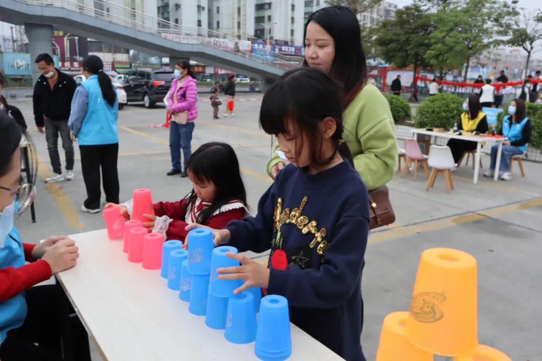 把所有杯子叠成金字塔形即为挑战成功!游戏规则虽然简单,但是在限时30秒内成功叠起来却不容易。“妈妈,快看,这是我已经叠好。”小朋友兴奋地和身旁的父母分享到。