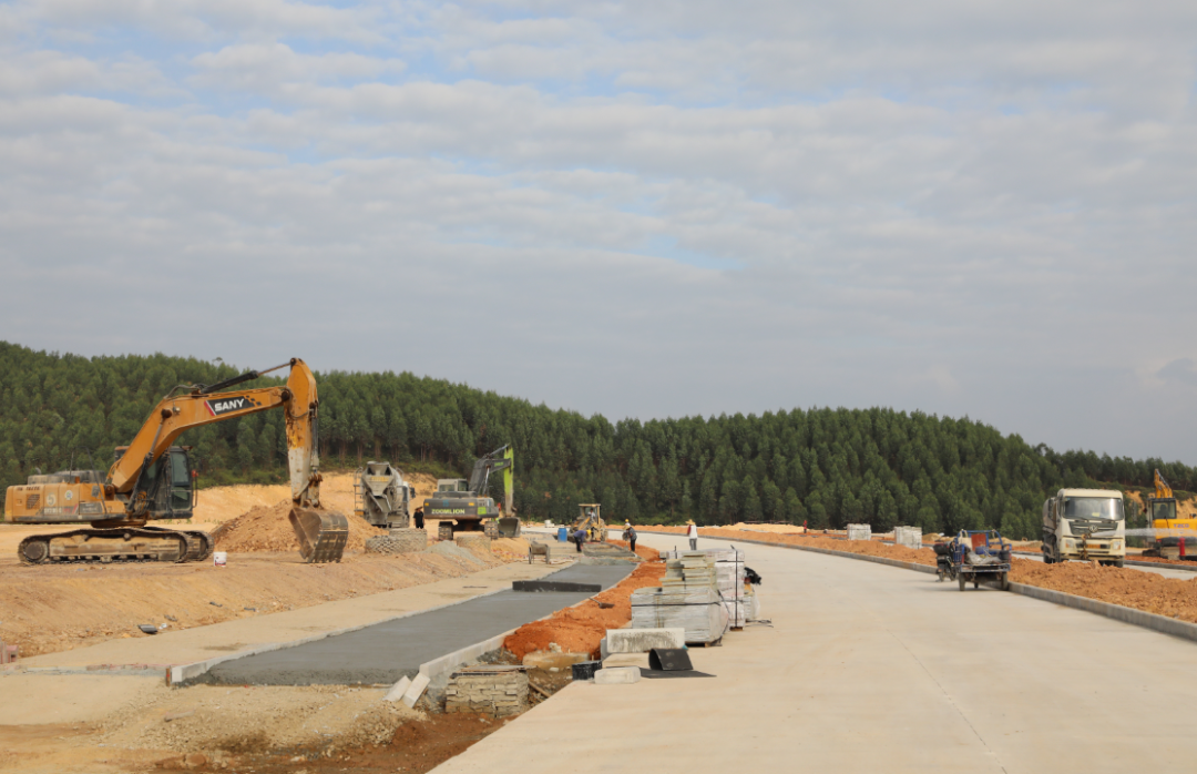 在开平市国际卫浴创新基地,各在建项目以及基地道路工程正在紧张作业,施工人员正抢抓施工黄金期,如火如荼推进项目建设进度。