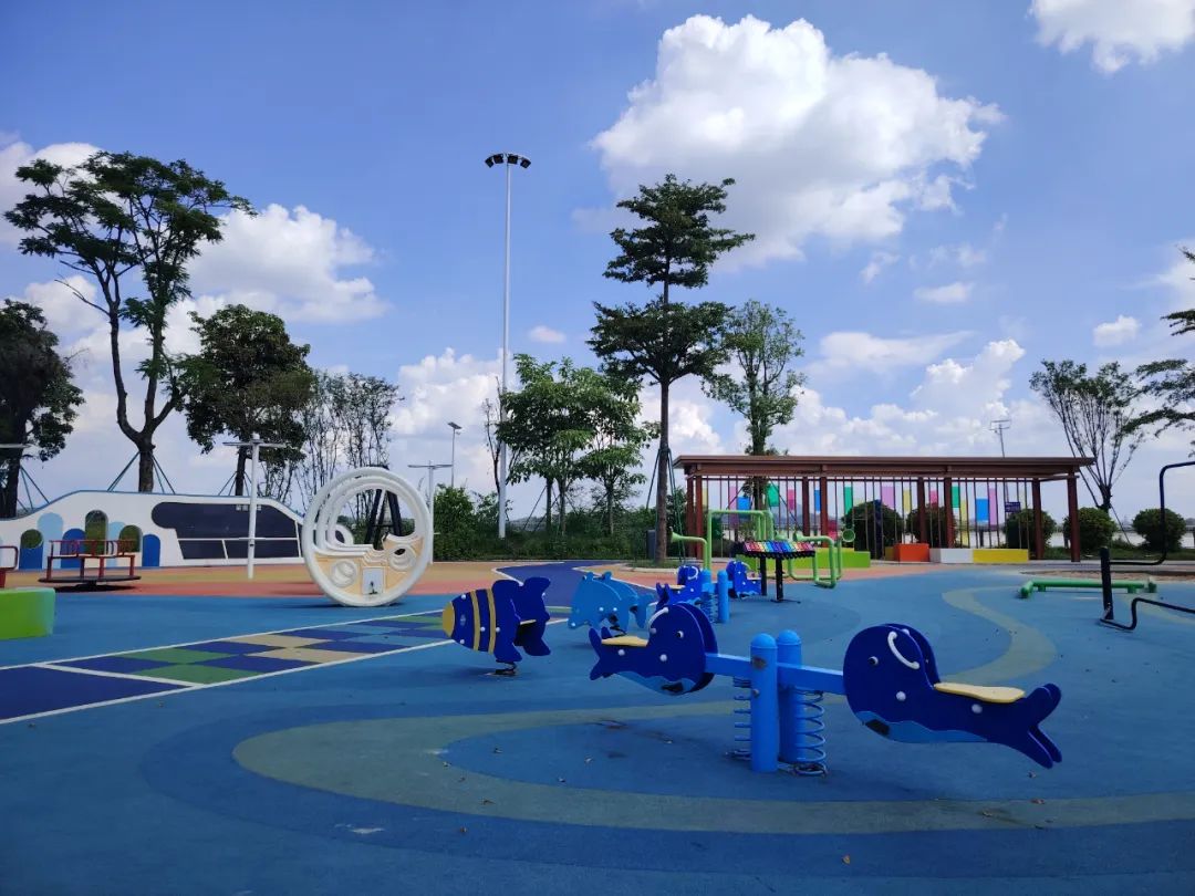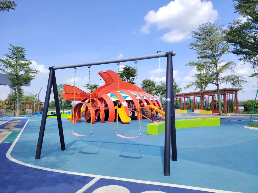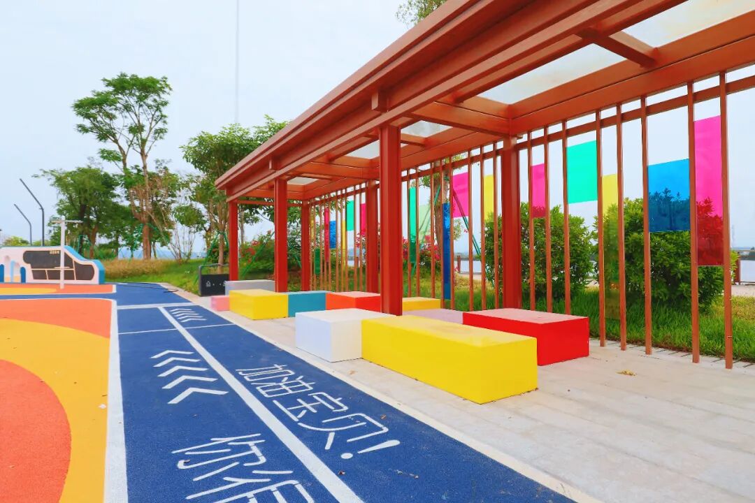 其中,面积达1630平方米的儿童乐园是长廊的核心亮点,园内配备了大鱼滑梯、迷你攀岩点、儿童健身器材等多样化儿童设施,为不同年龄段儿童打造了一个安全益智的活力天地。