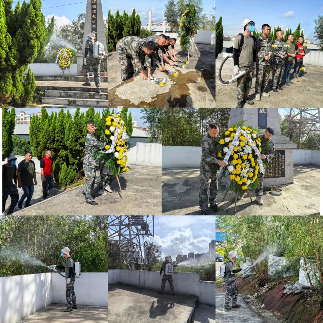 活动开展前,全体人员分头有序地对烈士陵园的卫生进行大清洁,认真地擦拭纪念碑上的尘土,清扫周边的落叶杂物,并对绿植进行防灭蚊消杀,用双手为先烈们守护起一方整洁庄严的纪念空间。